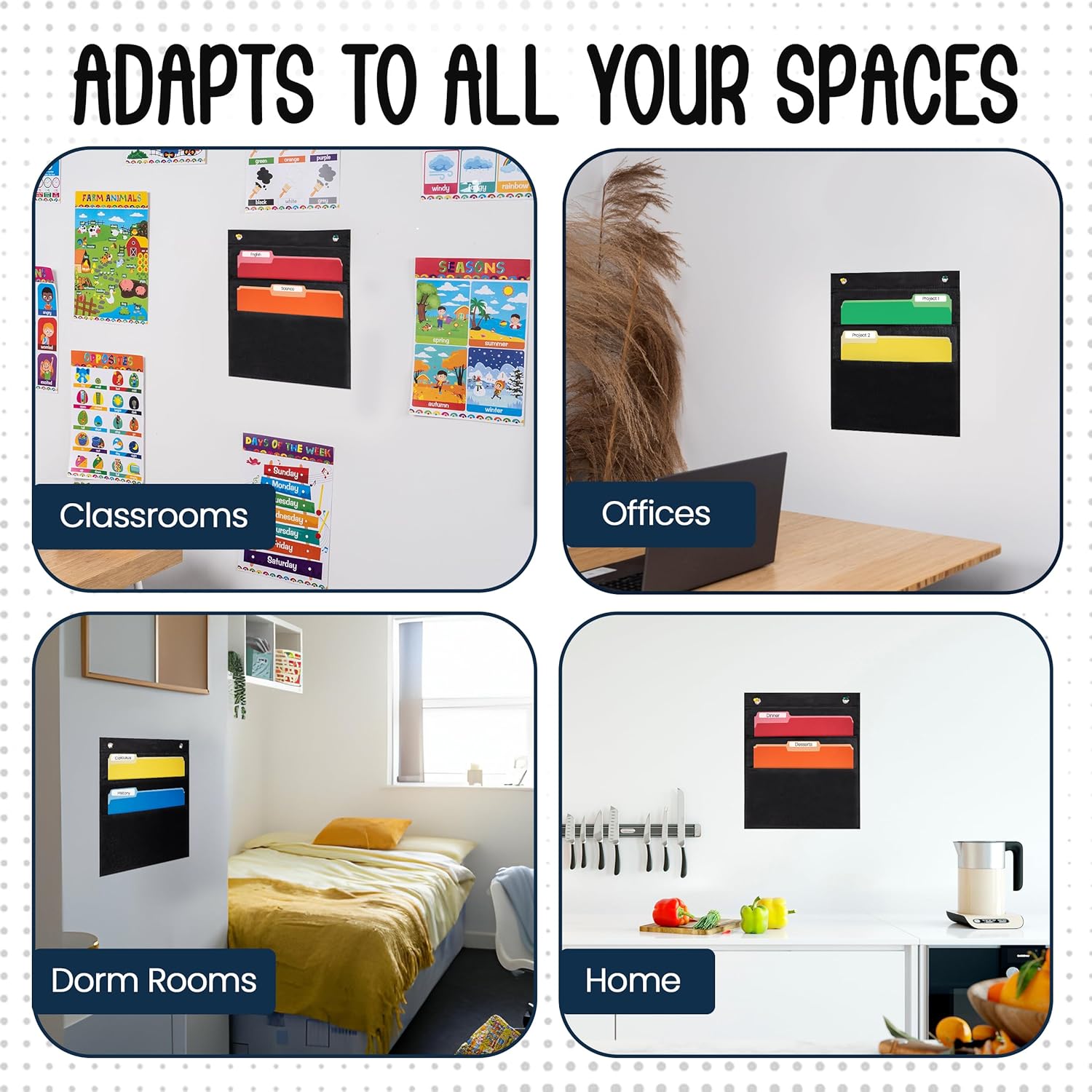 - Versatile Use - From classrooms to dorm rooms, offices to homes, our hanging file folders pocket chart fits in seamlessly. The clean and classic design adds a touch of elegance wherever you choose to use it.