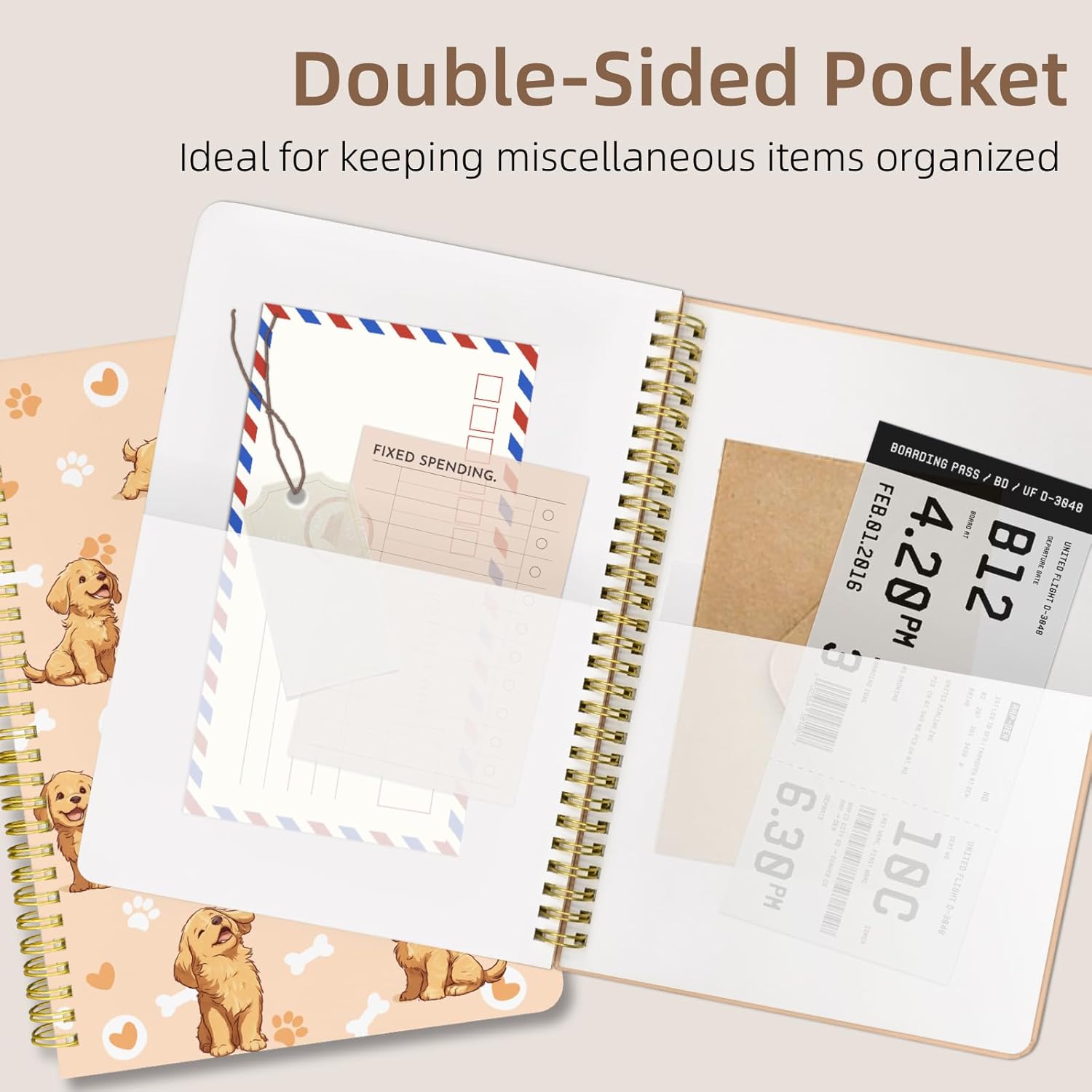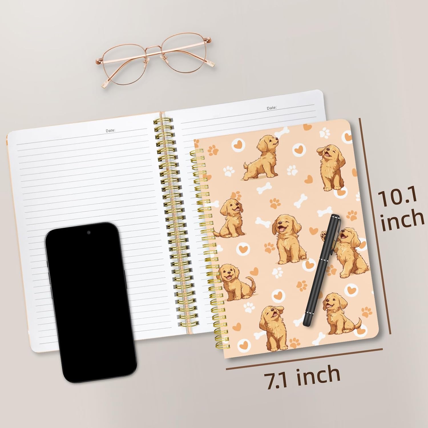 Cute Spiral Notebook journal B5 Aesthetic Pretty Design for Women Girls Kawaii with Pocket, 10 x 7.2 inch, Lined, Dogs