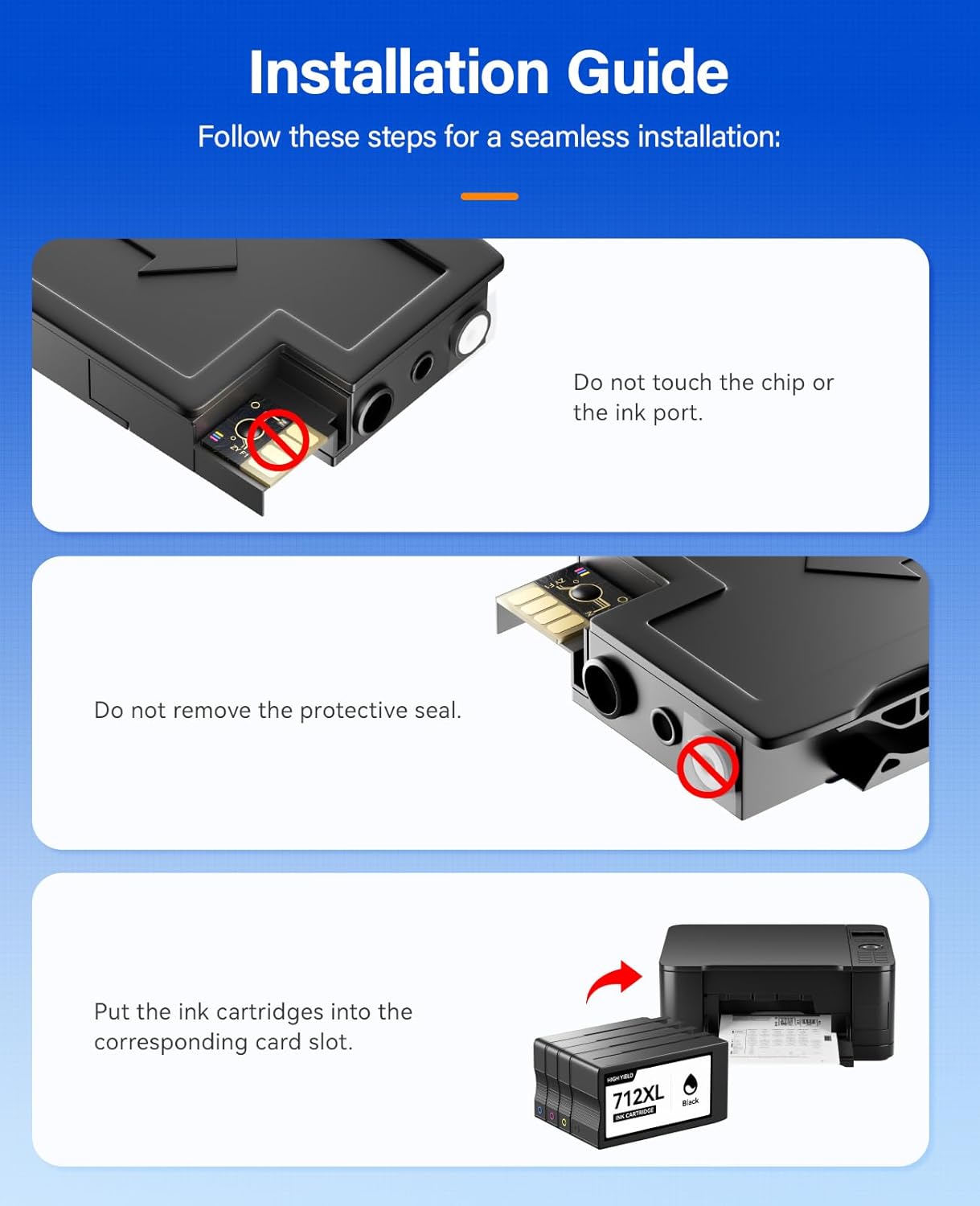 - ăHigh Qualityă712XL Ink Cartridges with chip can be instantly identifed by your printers and work perfectly, making daily documents, reports, letters, graphics and photos very clear and bright.