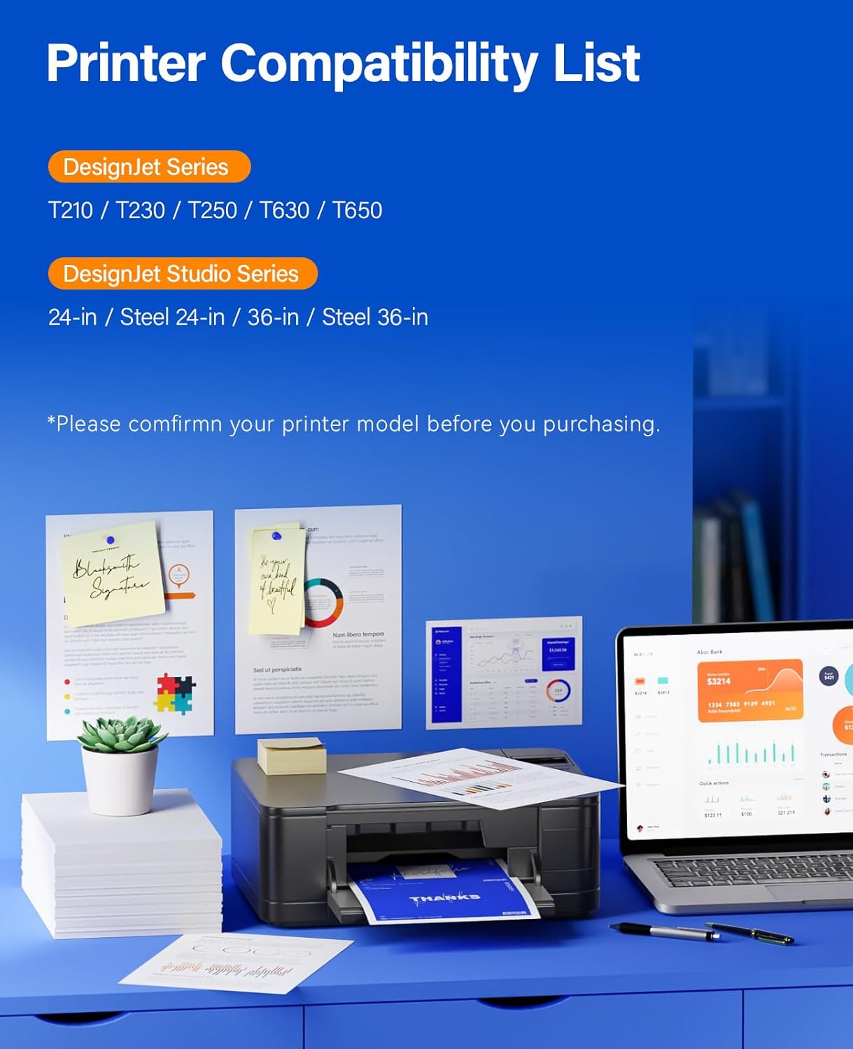 - ăCompatible PrinterăCompatible for HP DesignJet: T210, T230, T250, T630, T650ďźHP DesignJet Studio: 24-in, Steel 24-in, 36-in, Steel 36-in Printer.