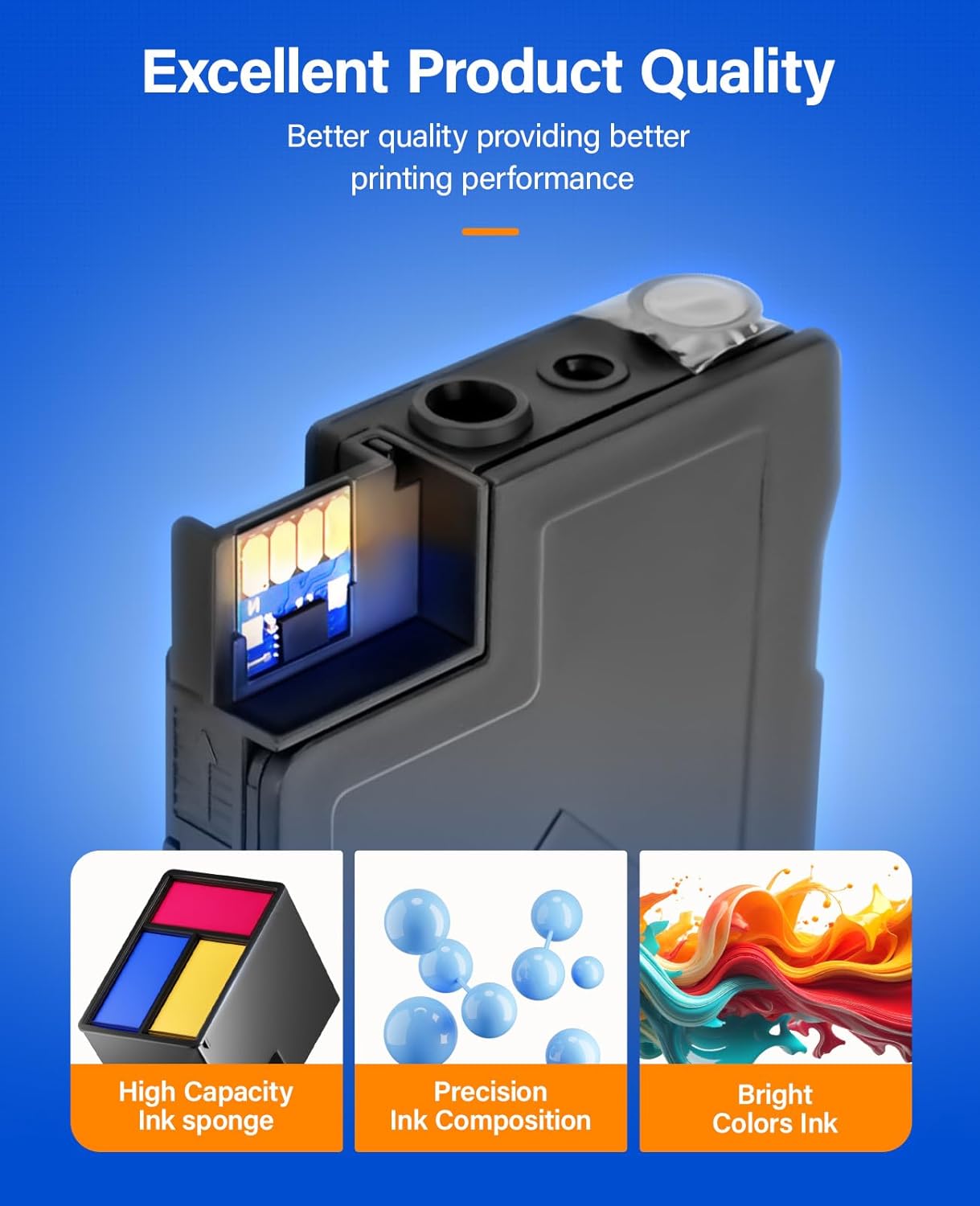 - ăLatest Chip VersionăThe KingKJ Ink Cartridges is equipped with the latest built-in chip, ensuring perfect compatibility between each Ink Cartridges and the printer. When using the KingKJ Ink Cartridges to print for your printer, you will receive clear text and sharp images. All KingKJ Ink Cartridges have undergone strict quality testing to ensure stability and reliability, and have obtained ISO9001 certification. In addition, our product team offers 2-year warranty, 24-hour customer service, and replacement services for defective products.