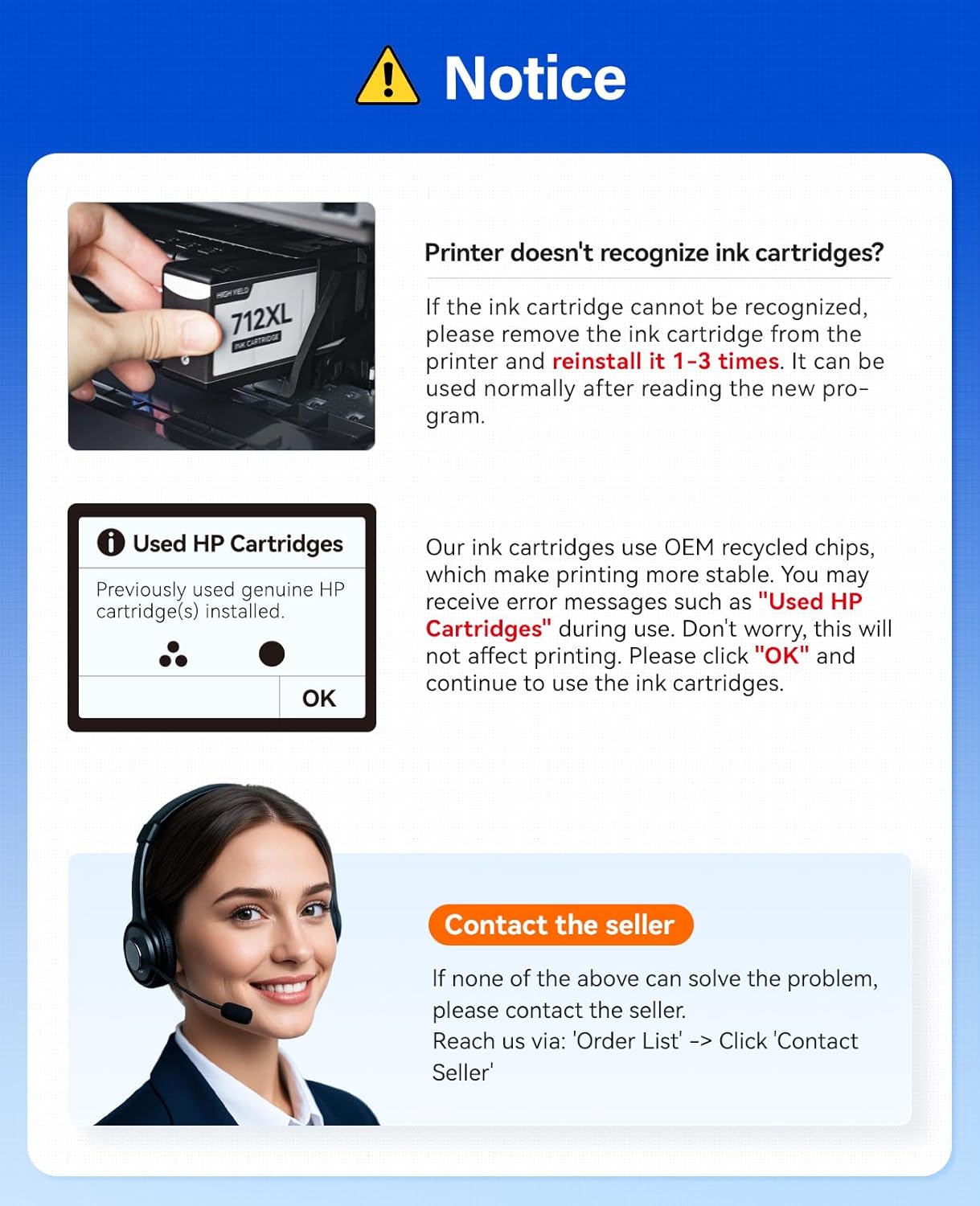 - ăWarm Tip:ăPlease check the printer model of this Ink Cartridge for 712 712XL Ink Cartridges and make sure your printer model before placing an order.