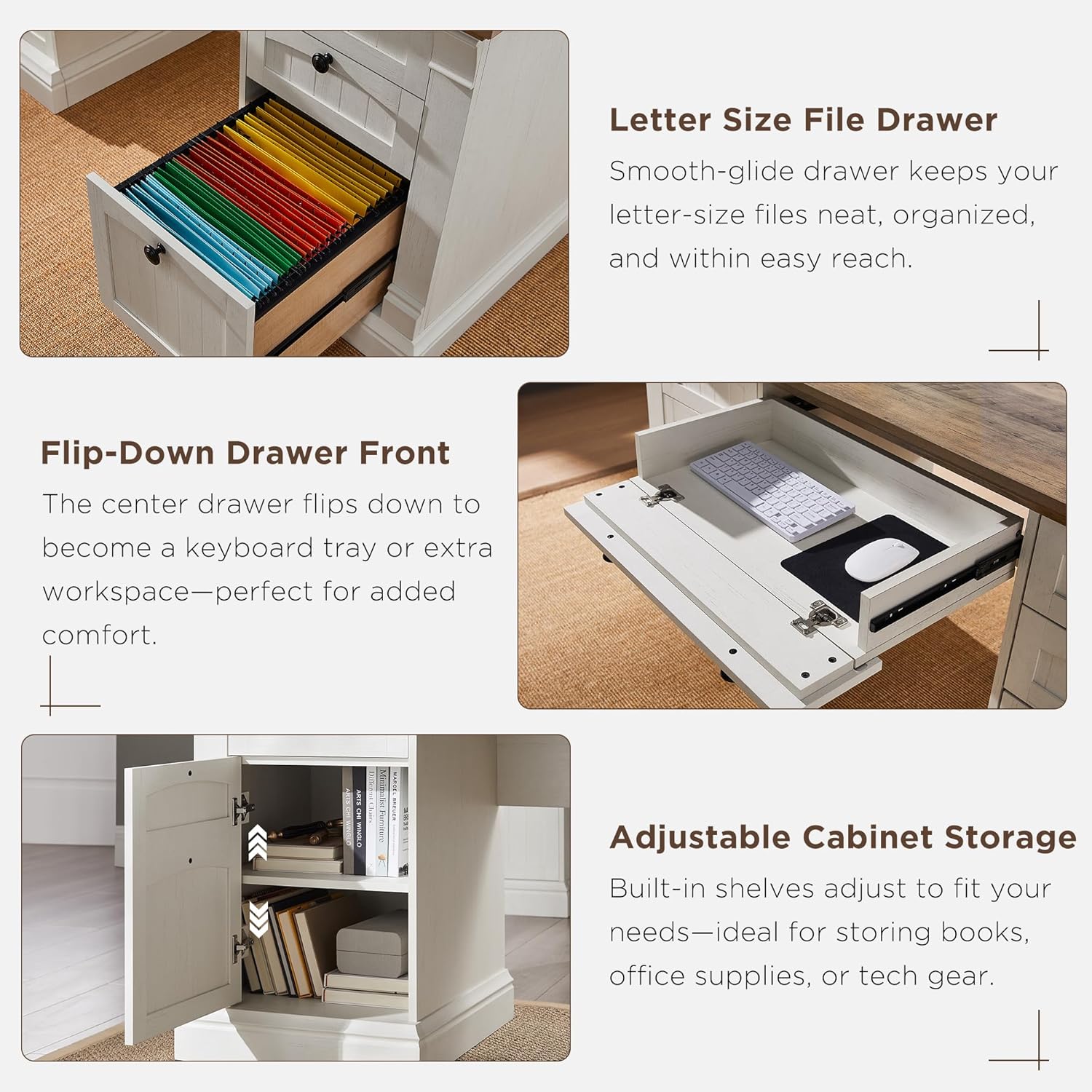 - Ample Storage for a Tidy Workspace: Keep your office organized with a large file drawer for letter-size documents, three utility drawers for supplies, and a cabinet with an adjustable shelf. A dedicated compartment also fits a vertical CPU towerâso everything has its place and stays out of sight.