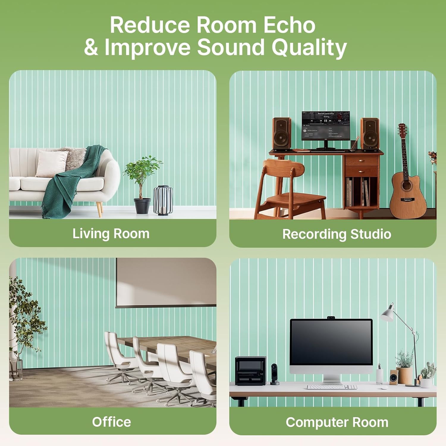 Acoustic 4 Pack Soundproofing UV Print Panels, 47.2” x 23.6” x 0.4” Adhesive Noise Dampening Wall Panels for Home Studio, Office, Gaming Room, and Theater(Green)