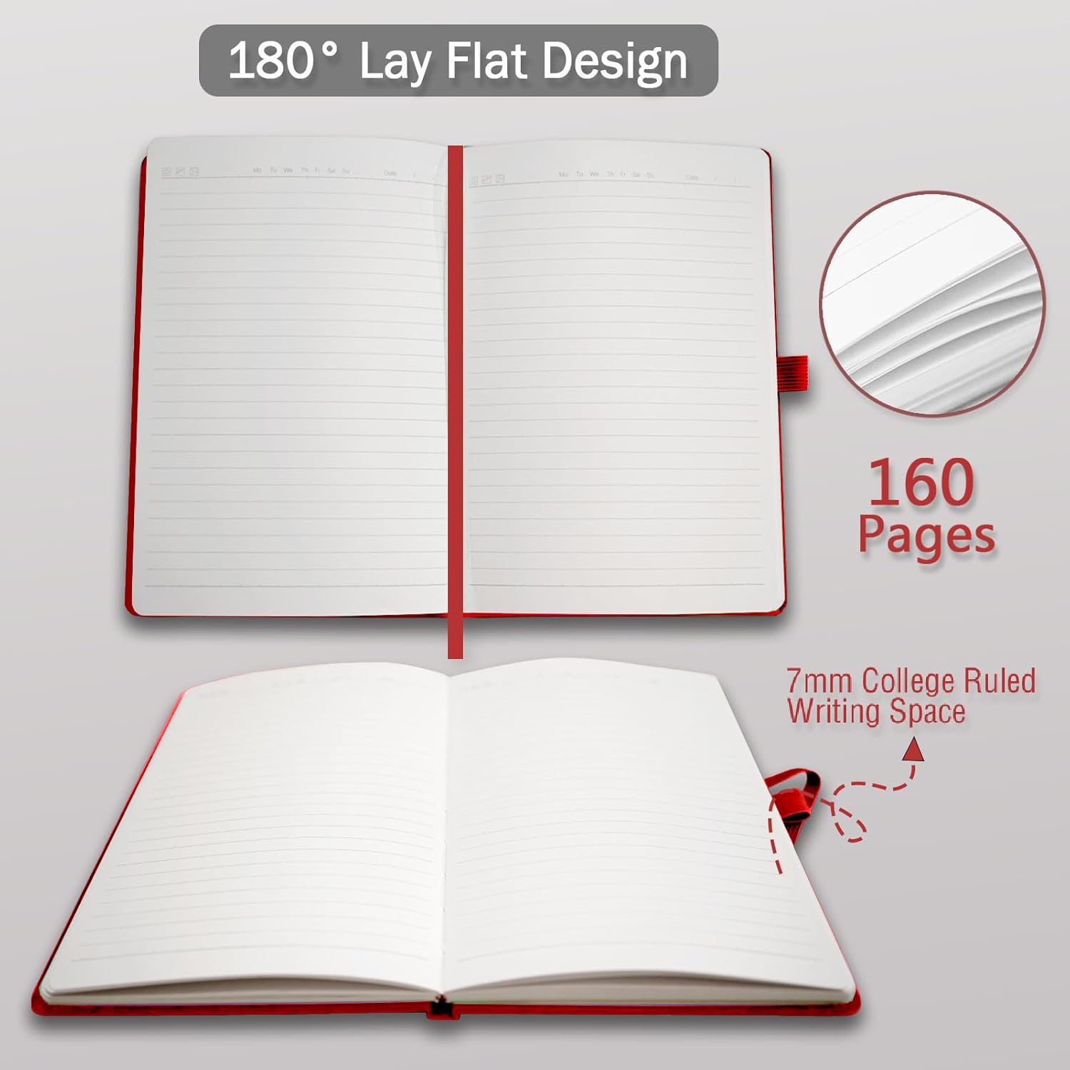 - Hardcover Business Notebook: A5 Size classic college ruled lined red notebook comes with a soft touch PU leather cover, The notebook measures 5.5"×8.3". It is the perfect size for carrying around or put into your bag.