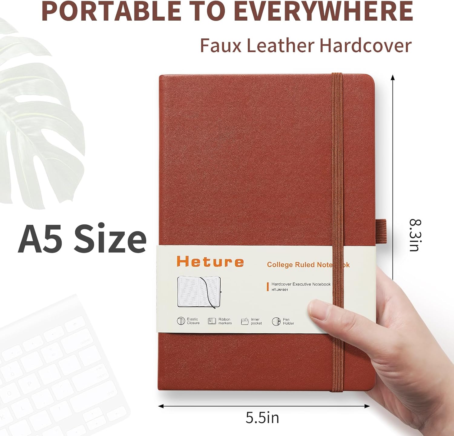 - Hardcover Business Notebook: A5 Size classic college ruled lined notebook comes with a soft touch PU leather cover, The notebook measures 5.5"×8.3". It is the perfect size for carrying around or put into your bag.