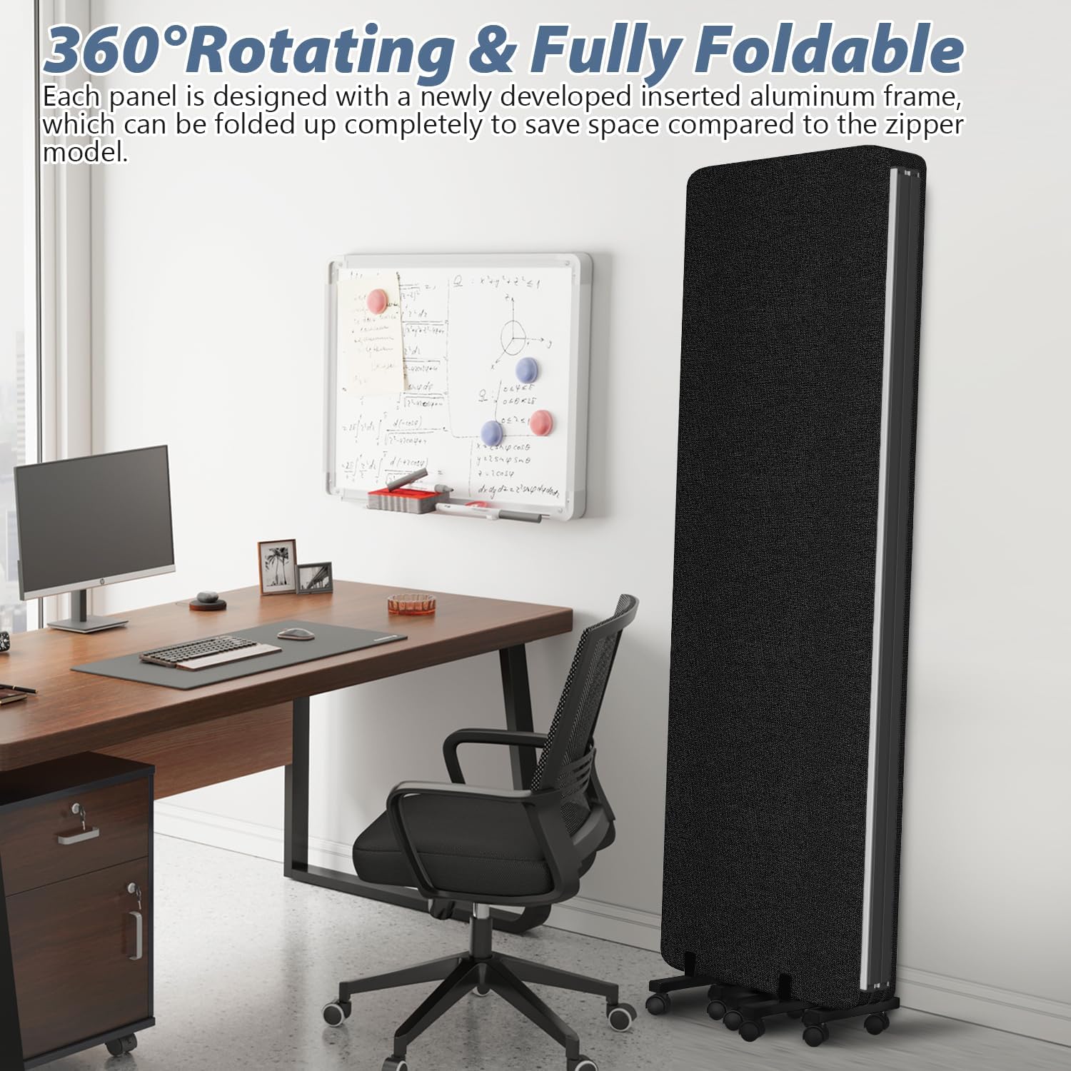 Acoustic Room Divider Privacy Panel with Wheels, 4 Panel Soundproof Room Divider (Aluminum Frame) for Room Partition, Folding Room Dividers Separation Office Cubicle Wall Sound Proof Partition Divider