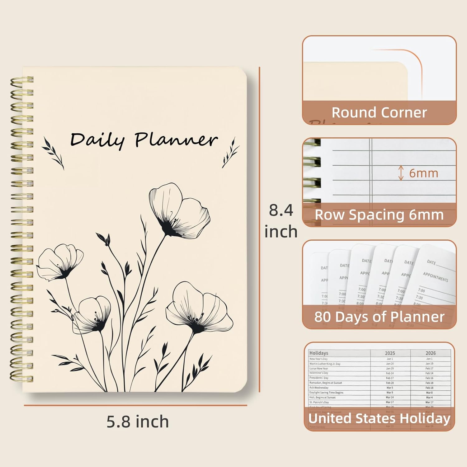 - Practical Extras: US Holiday List: A convenient reference for planning around holidays, and back Pocket, store loose notes, receipts, or stickers for easy access