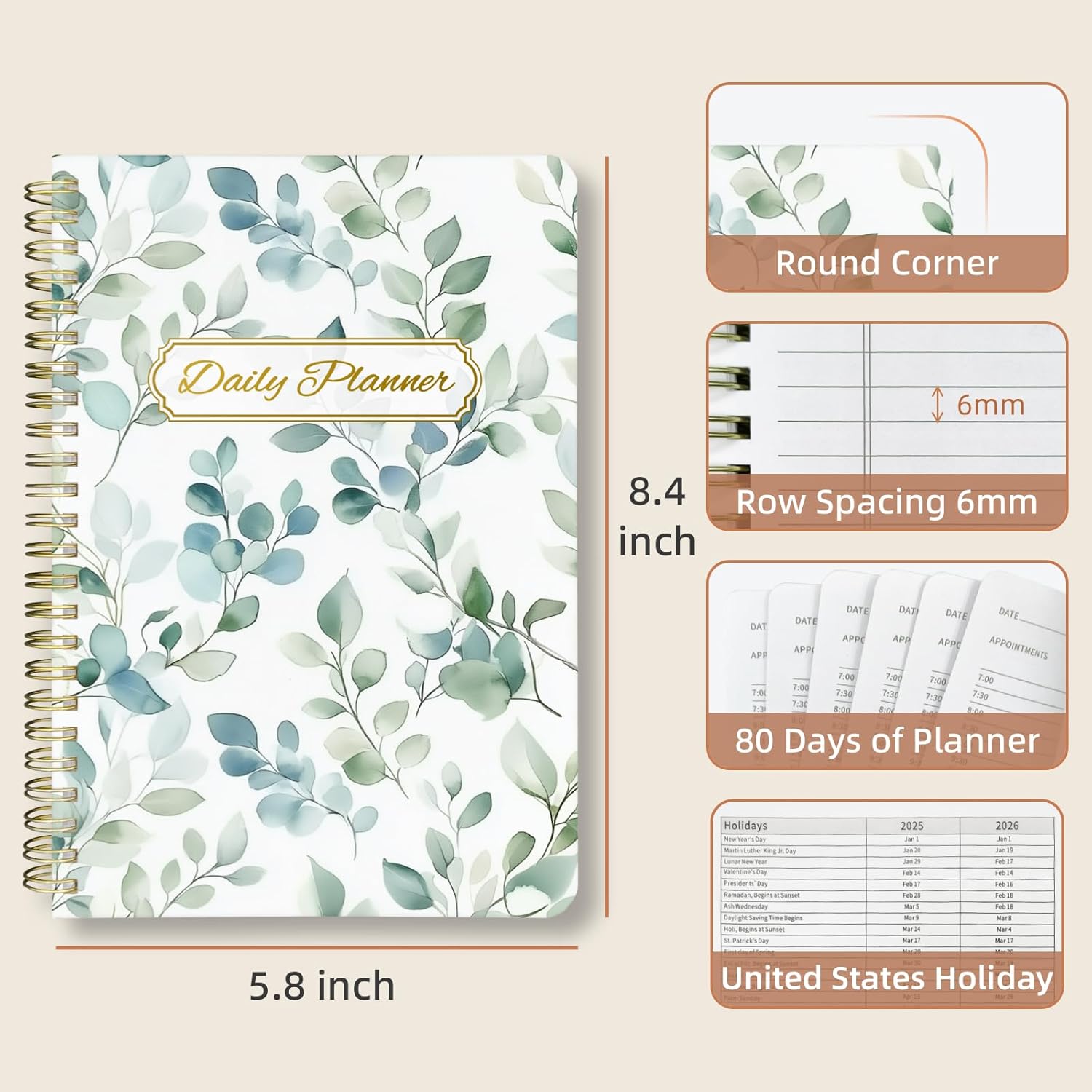 - Practical Extras: US Holiday List: A convenient reference for planning around holidays, and back Pocket, store loose notes, receipts, or stickers for easy access