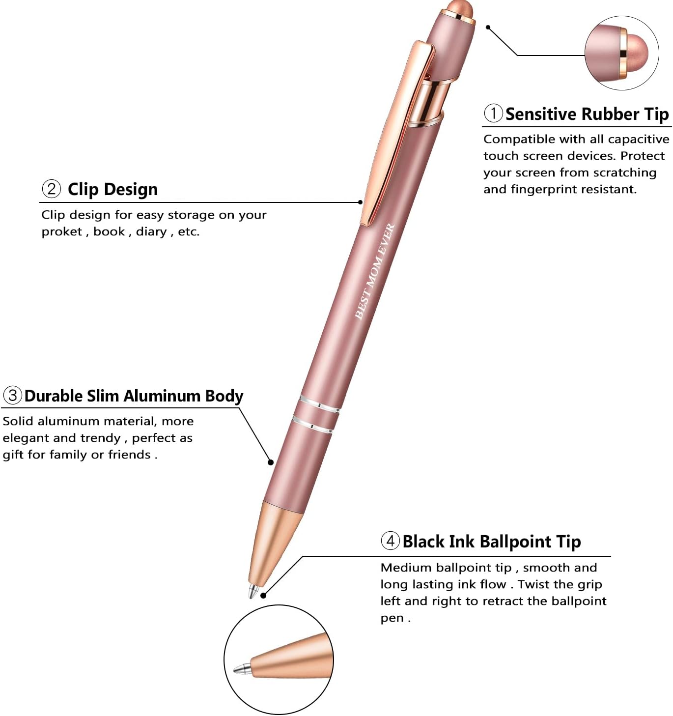 Aozora Best Mom Ever Gifts 9 Pack Fancy Pens with Stylus Tips Presents for Mom from Daughter or Son, Mothers Day Pens Happy Birthday Gifts for Moms