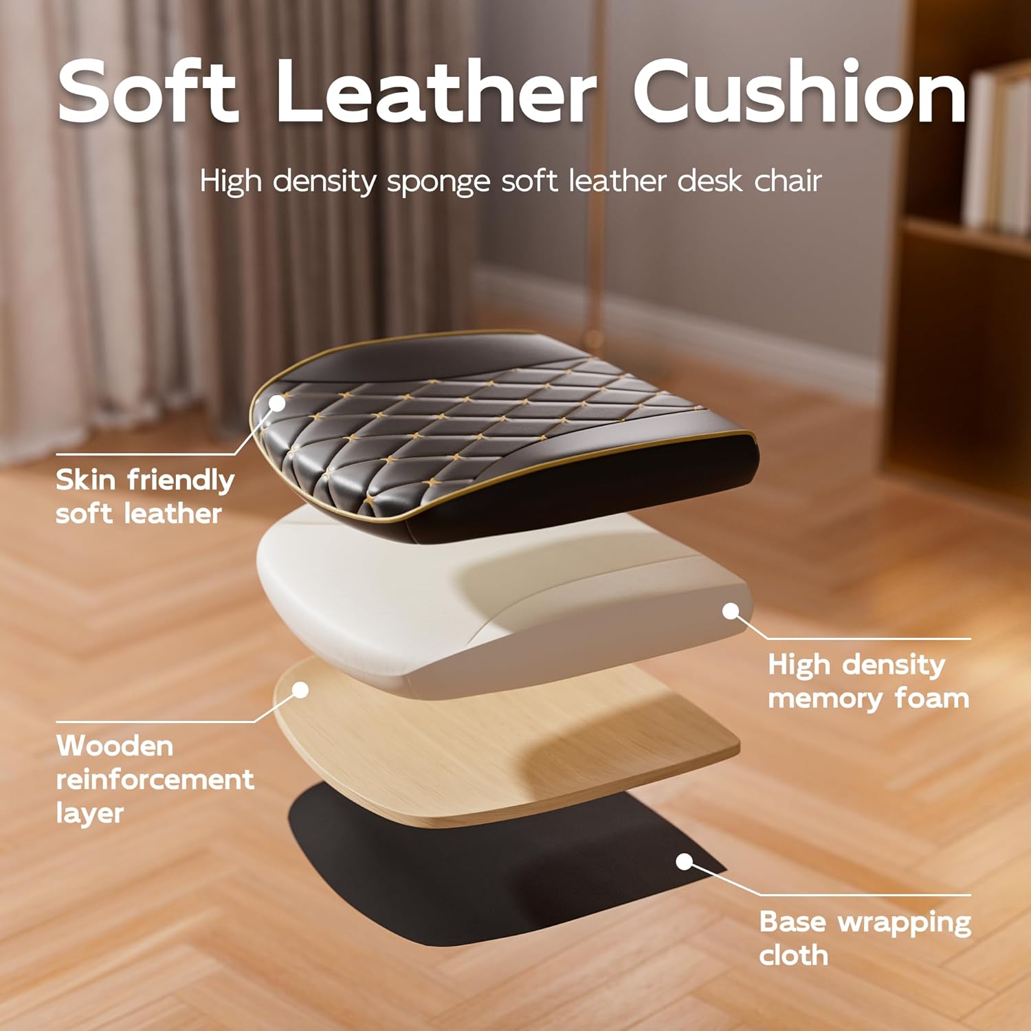 - Premium PU leather desk chair with a rocking backrest: Crafted with high-quality PU leather that is easy to clean and durable, the chair features a 90°–120° rocking backrest for flexible work positioning, making it a comfortable choice for all-day sitting
