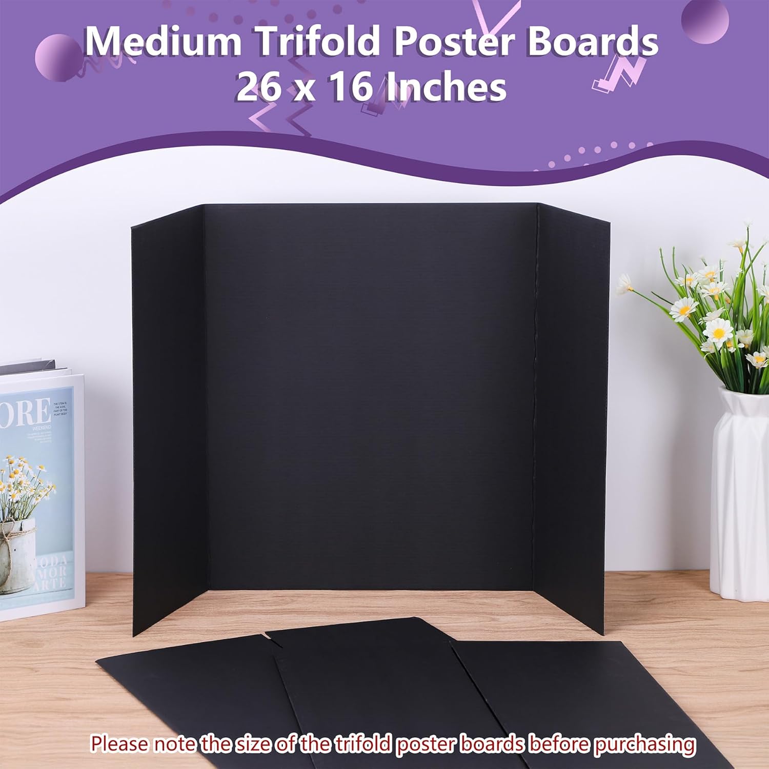 3 Pack Medium Trifold Poster Board 26" x 16" Tri Fold Poster Boards Black Corrugated Cardboard Project Boards for Presentations, School Projects, Science Fair, Exhibition Event Display