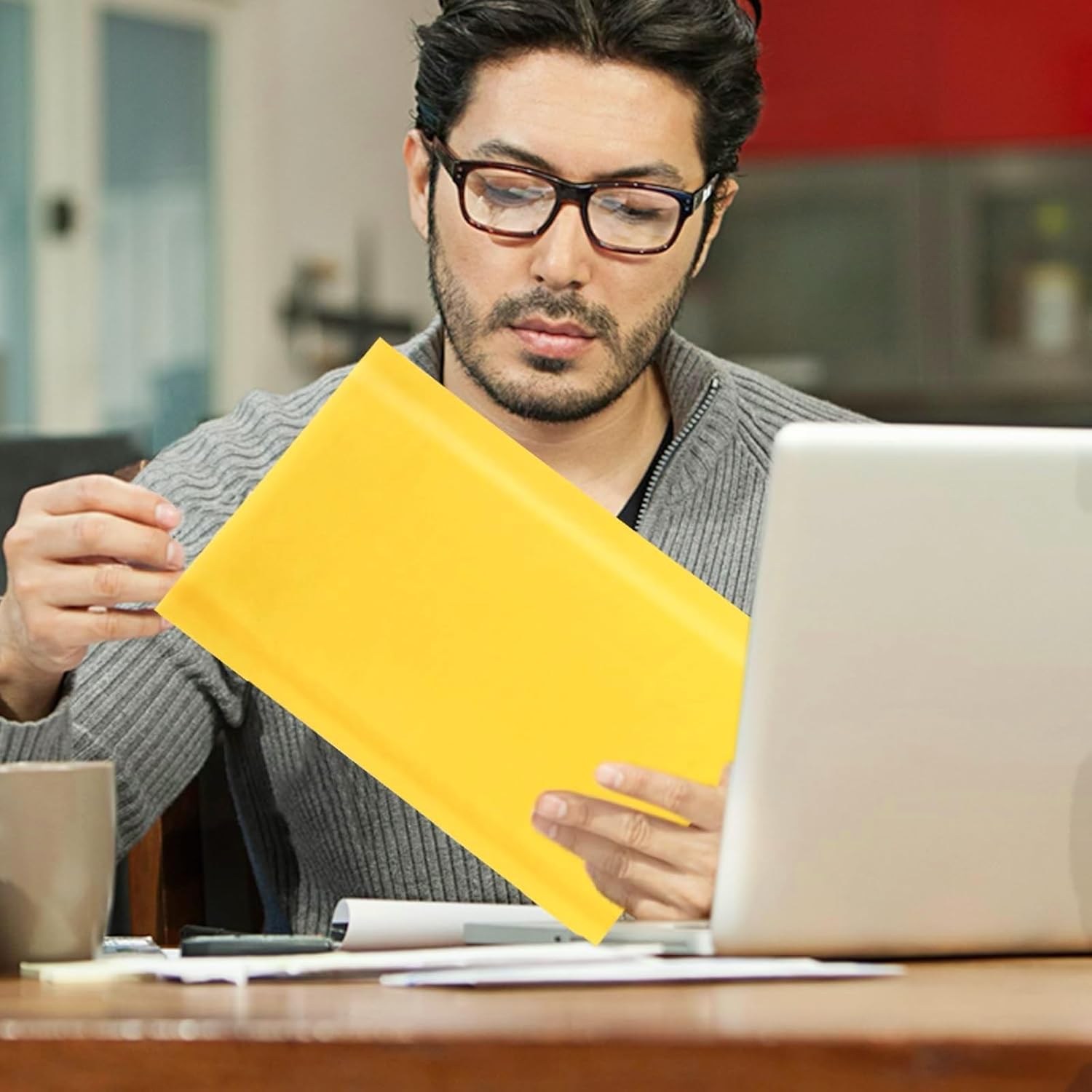 - 6×10 Bubble Mailers size:Our Kraft bubble mailers appearance Size 6x10" inch,usable dimension 6x9" inch,With 50 yellow self seal adhesives padded envelopes.The light weight can reduce transportation costs and can be used to package and transport trading card,office supplies,jewelry,cosmetic and more,great for small business packing.