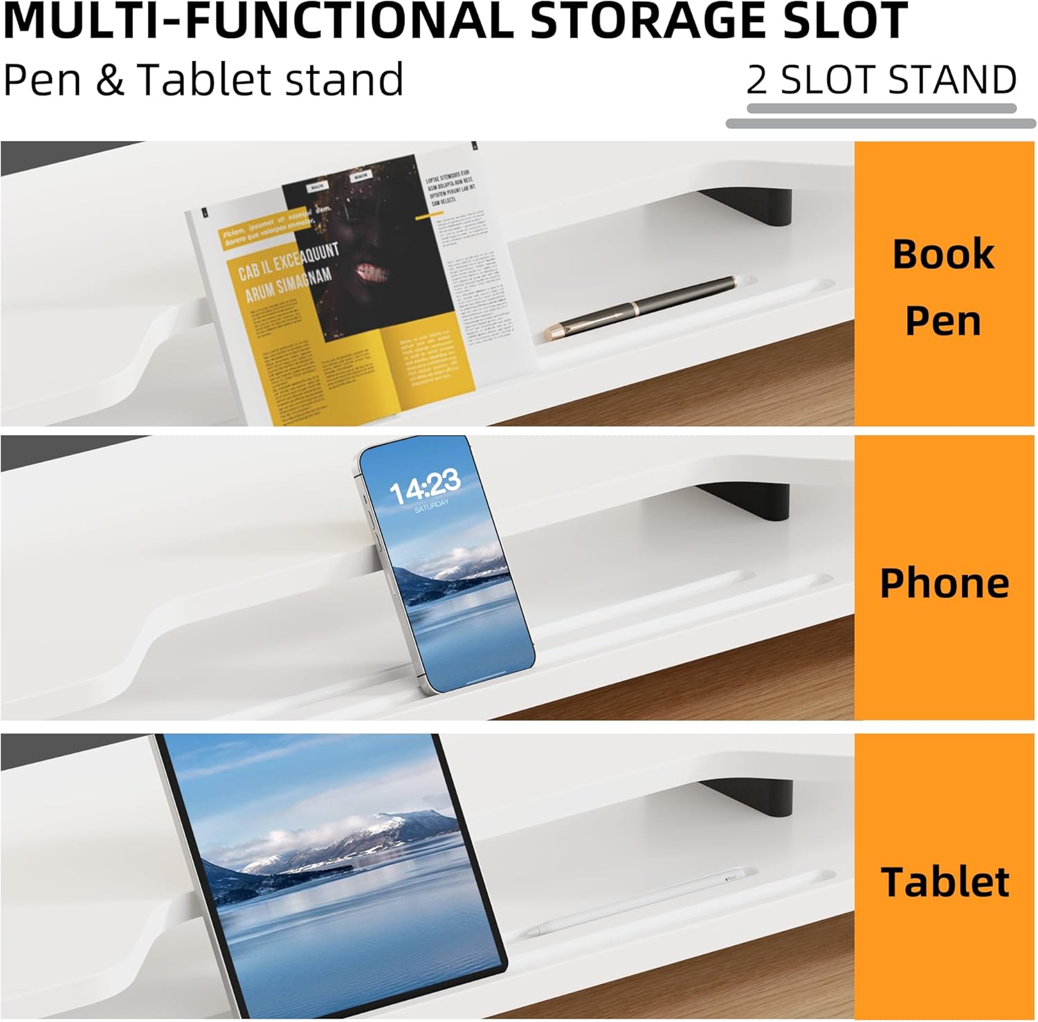 2 Tier Dual Monitor Stand Riser,Wider Board Computer Monitor Stand for 2 Monitors,Slot For Phone/Tablet Office Desktop Organizer for Laptop,PC,Computer,Printer,White