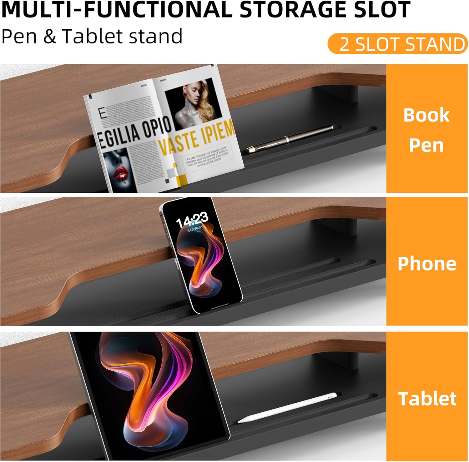 2 Tier Dual Monitor Stand Riser,Wider Board Computer Monitor Stand for 2 Monitors,Slot For Phone/Tablet Office Desktop Organizer for Laptop,PC,Computer,Printer,Walnut Finish