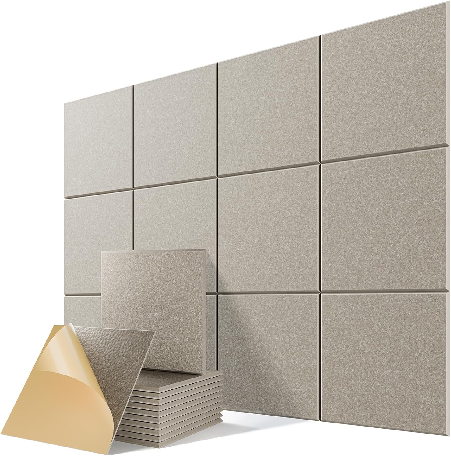 12 Pack Self-Adhesive Acoustic Panels, 12" X 12" X 0.4" High-Density Sound Proof Foam Panels for Walls, Soundproof Wall Panels for Home & Office (Camel)