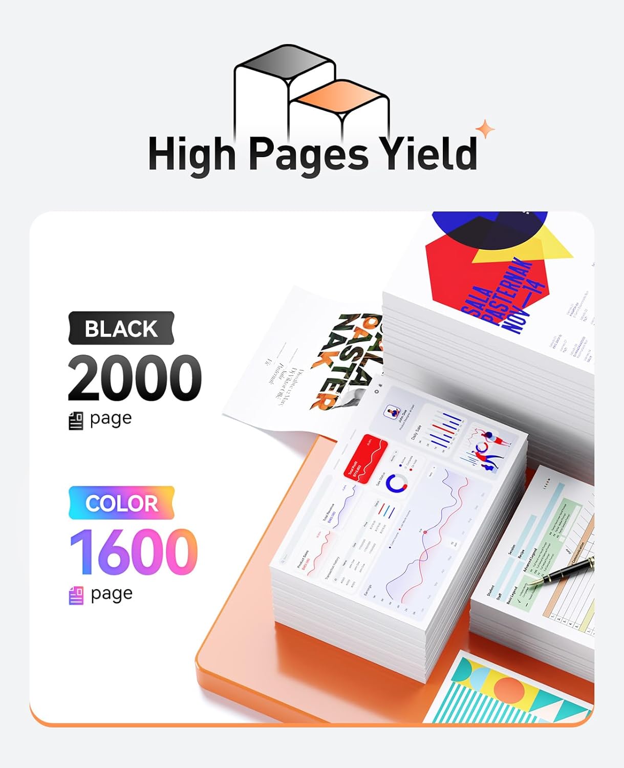 - High Pages Yield: 952xl black ink cartridge can print up to 2,000 pages, C/M/Y ink cartridges can print 1,600 pages per color to meet high frequency printing needs. (Based on 5% coverage rate).