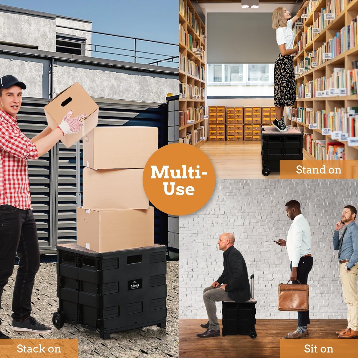 - LARGE CAPACITY 2 WHEELED UTILITY CART: Super Strong Heavy-Duty Construction with Lid- Holds Up To 80 Lbs: Collapses To 3" When Folded Flat / 16.5" When Fully Expanded