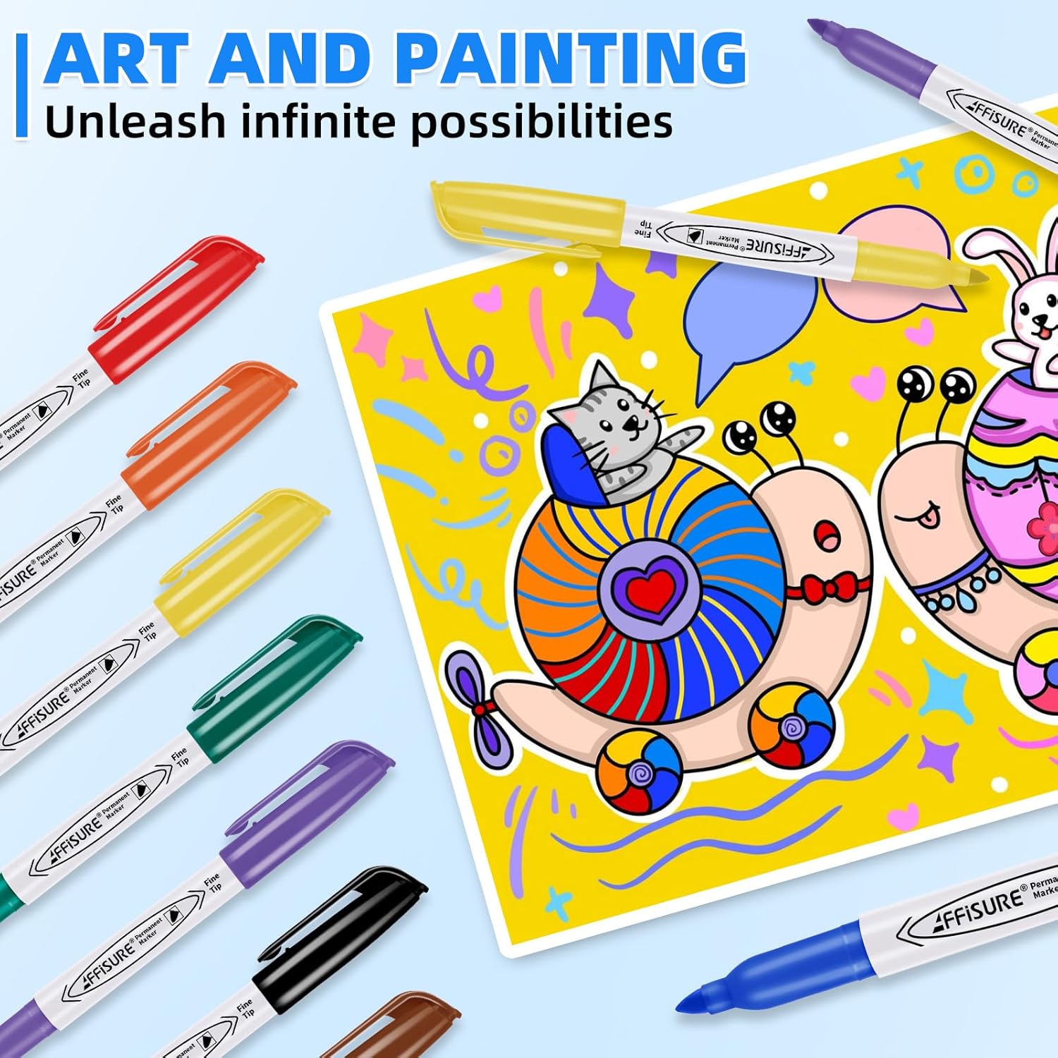 Permanent Markers Assorted Colors Set, 24 Colored Markers 24 Pack, Fine Point,Works on Wood, Plastic, Metal, and More, for Adults, Artist, Taecher, Kids
