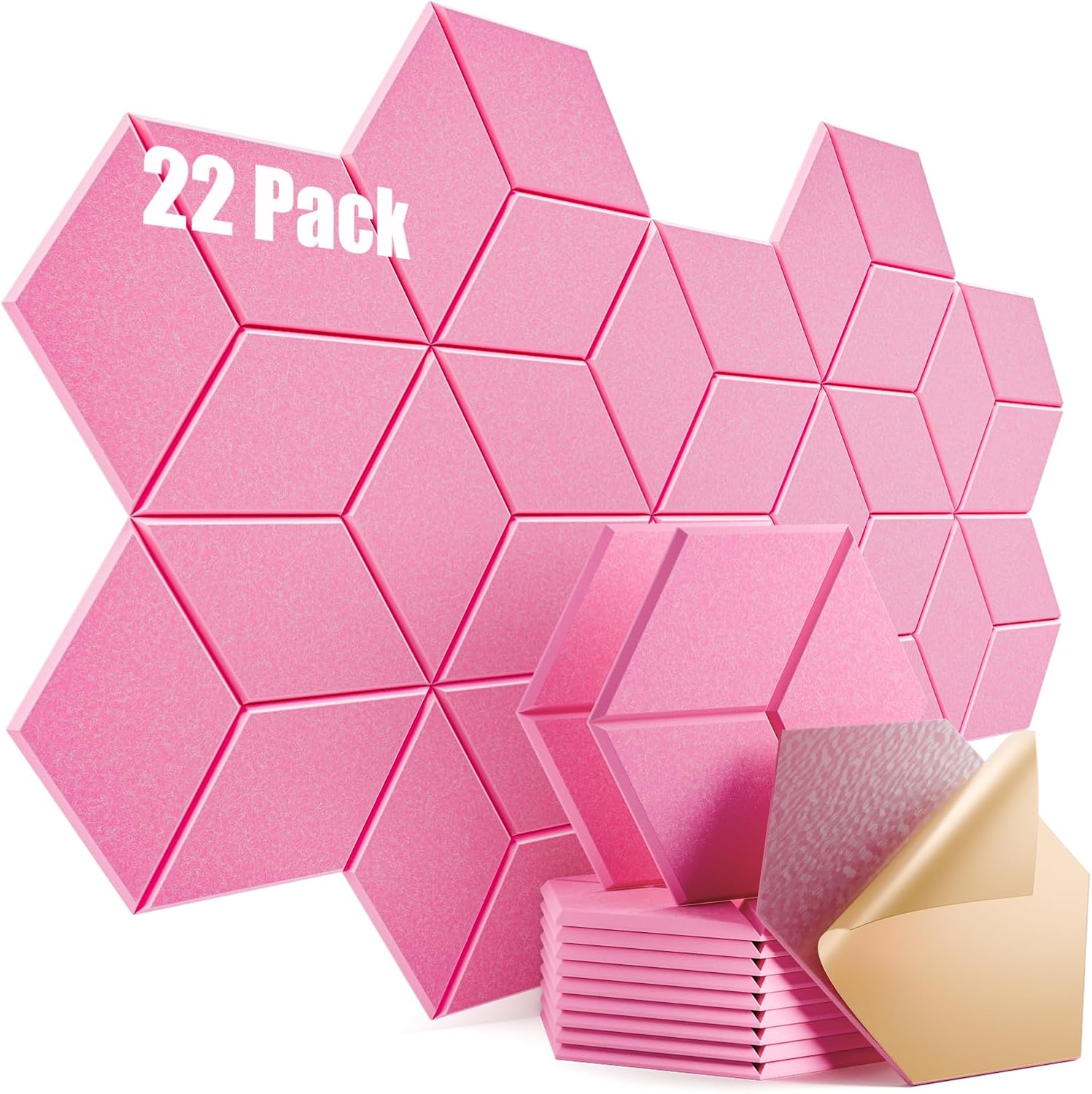 22 Pack Self-adhesive Acoustic Panels 12" X 10" X 0.4" - Sound Proof Foam Panels with High Density, Y-Lined Design, Flame Resistant, Absorb Noise and Eliminate Echoes(Pink)