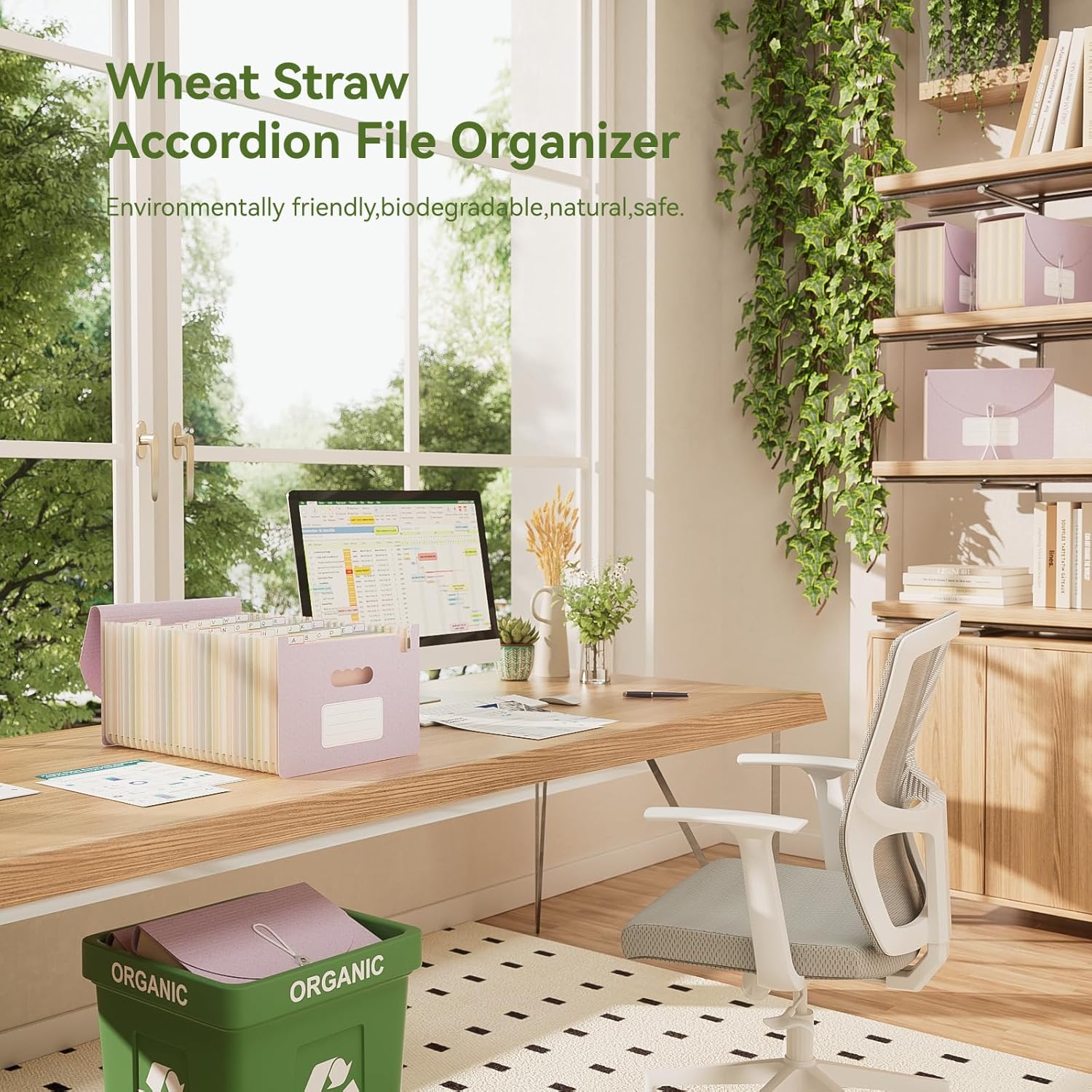 - Natural Color Selection:EcoStash wheat straw Expanding File Folder have a unique texture and appearance. Available in 4 colors: Mint Green, Sky Blue, Wheat Yellow, and Strawberry Pink. Using different colors allows you to easily organize and distinguish documents. Its outstanding aesthetics allow you to experience the breath of nature in your daily use, adding a unique style to your document organization and protection.