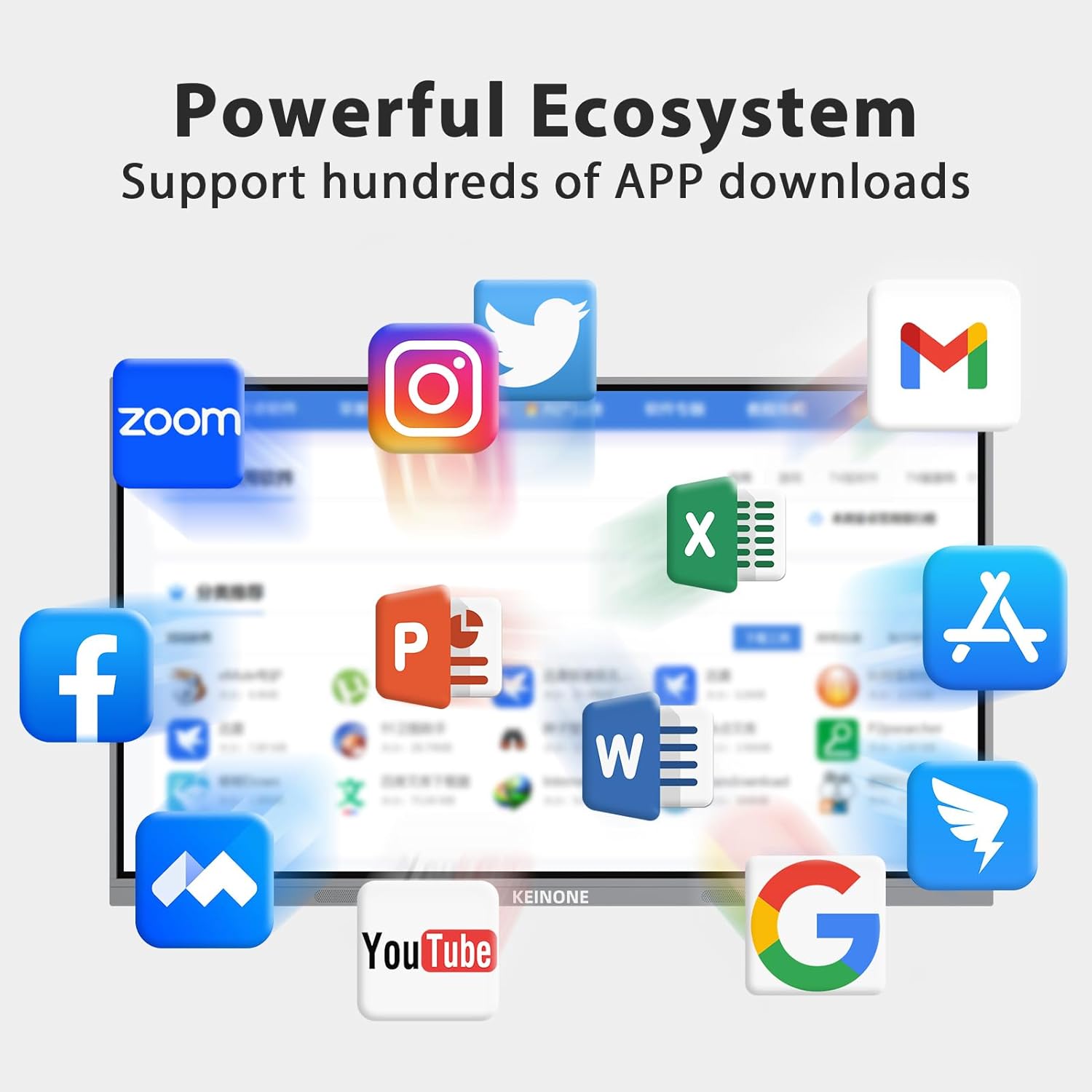 - Open App Ecosystem: The smart board supports apps and software downloads, allowing users to customize their experience and access a variety of tools and resources. Whether you need educational apps for the classroom, productivity tools for the boardroom, or entertainment apps for your home theater, KEINONE smartboard has you covered.