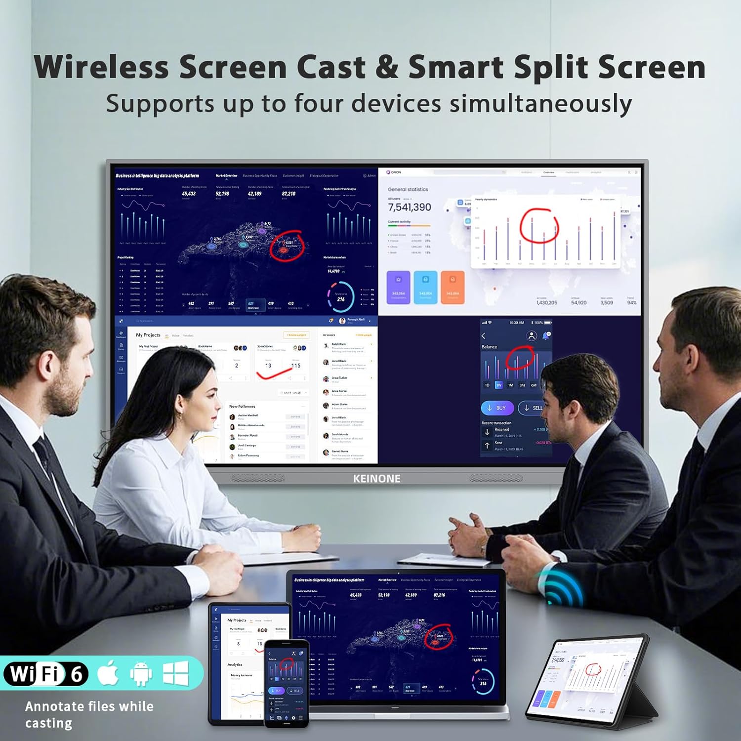 - Ultra High Performance & Storage: KEINONE smart board built-in Android 14.0 OS, Cortex-A55 octa-core CPU, 8GB RAM 128GB SSD, ultra-high configuration enough to quickly respond to multi-tasking, large files, and seamlessly switch between various applications to achieve your best user experience. This smart whiteboard is ideal for all spaces—from home and classroom to the office.