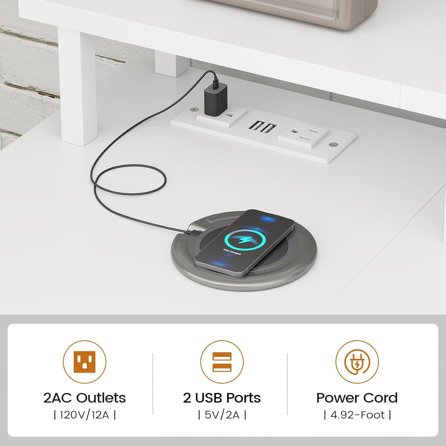 - 【CHARGING PORT】Our charging station includes 2-Outlet & 2 USB Ports to provide power for up to 4 devices simultaneously. Power outlet allows you to charge mobile devices such as cell phones, tablets, bluetooth speaker, etc.