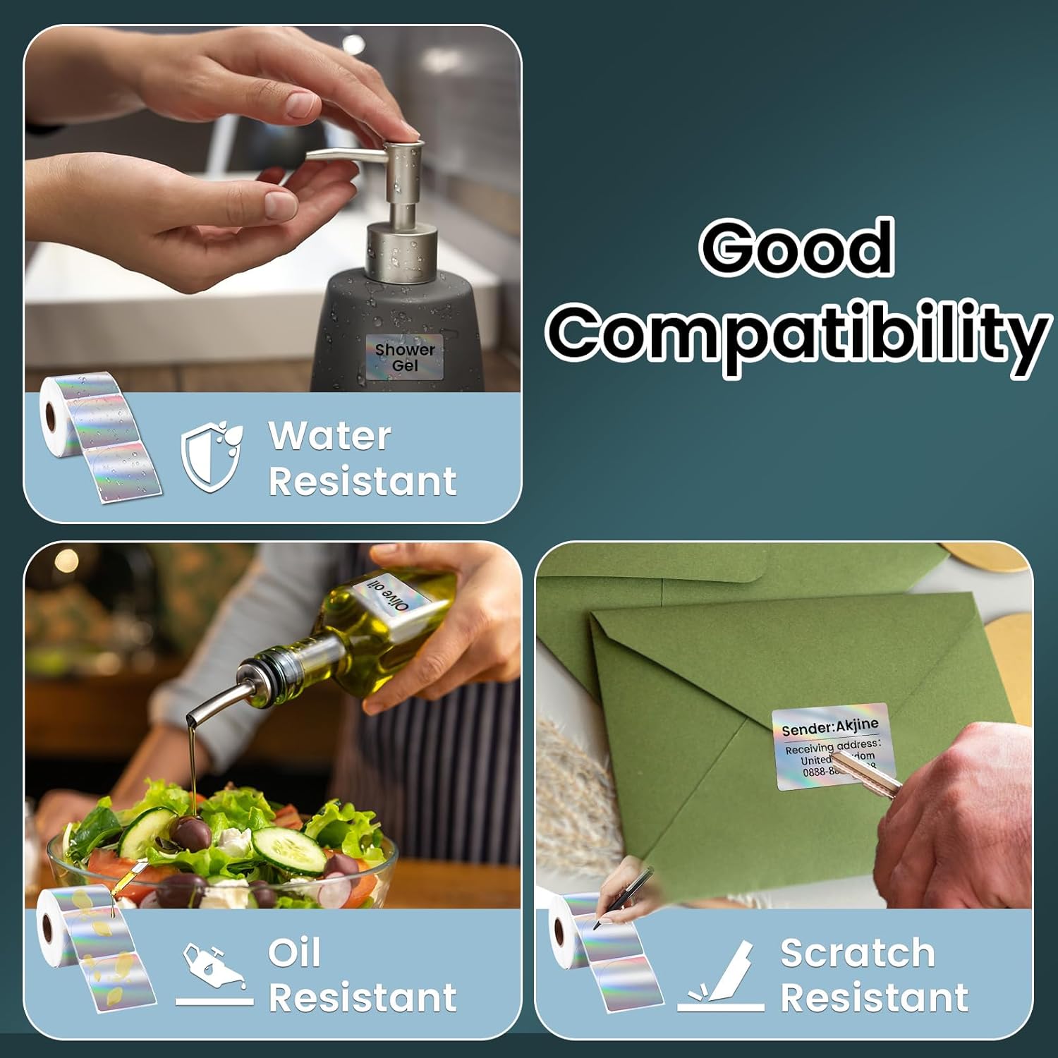 2.25x1.25 Inch Thermal Labels Sliver, Holographic Sliver Barcode Thermal Labels for Thermal Printer and Small Business, Multi-Purpose Rectangle Stickers, 500 Sheets/Roll