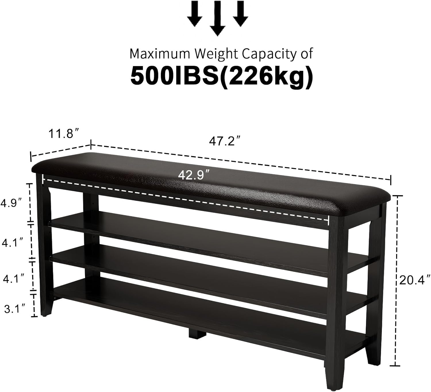 - 3-Tier Shoe Storage Design:This three-tier shoe storage bench can organize up to 15-18 pairs of shoes. The ergonomic 20.47" height allows for comfortable shoe putting on and taking off, keeping your entryway tidy.