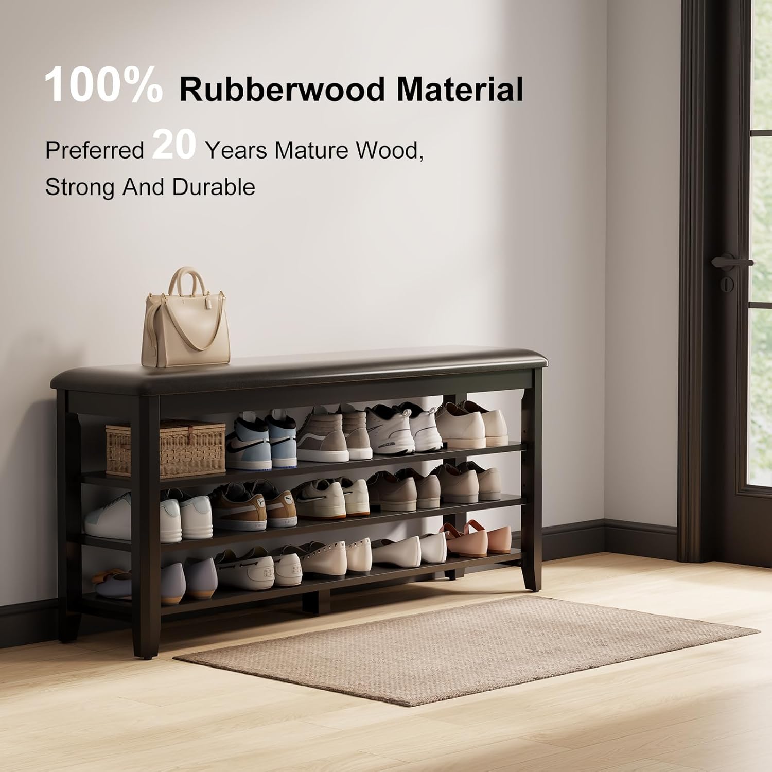 - Durable Rubberwood Construction:Made from 100% sturdy rubberwood, this entryway bench can support up to 500 lbs, making it ideal for entrances, hallways, and mudrooms. Its robust frame ensures long-lasting stability.
