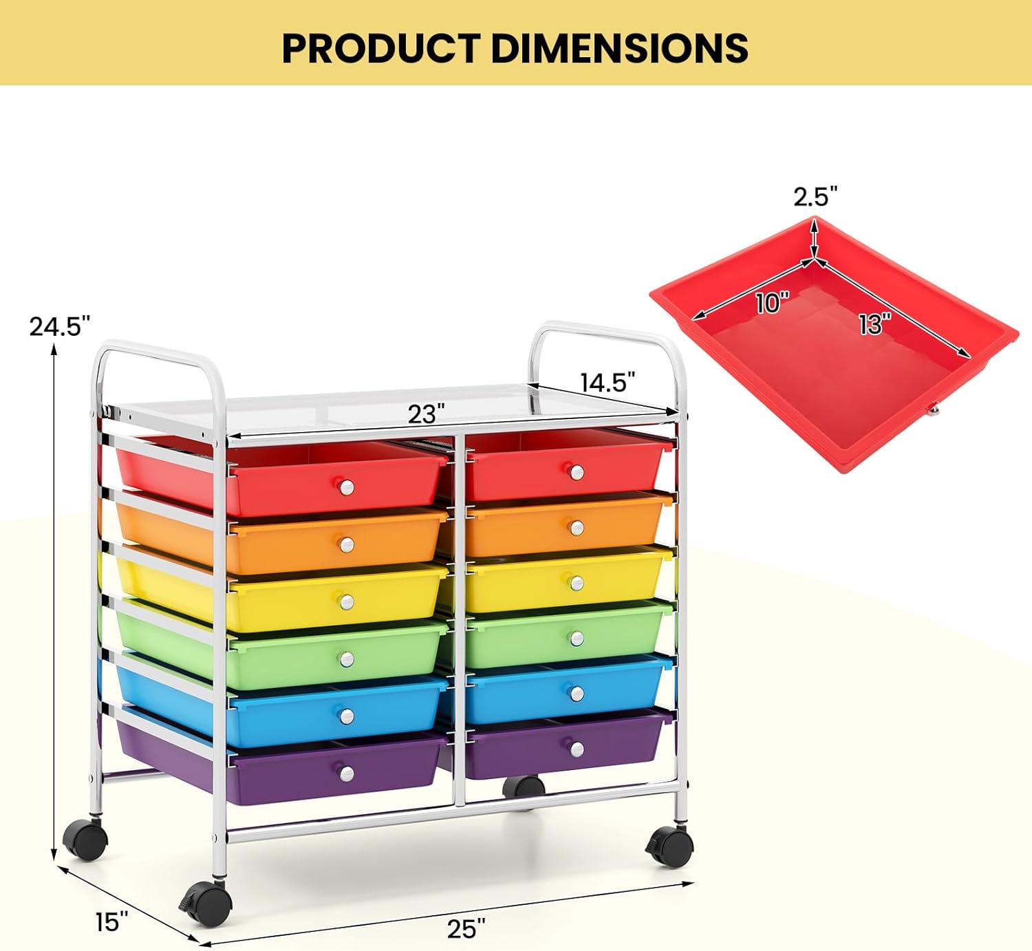 - [Large & Classified Storage Space]: The storage cart features 12 removable drawers in different vibrant colors, allowing you to easily categorize and access your items. More, you will no longer be bothered about messy room.