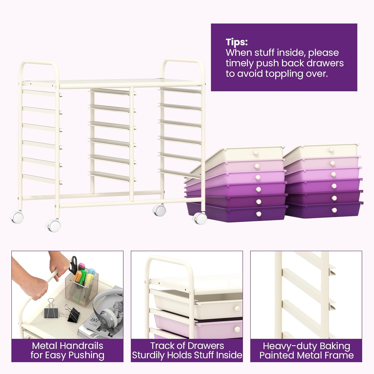 - [Sturdy & Durable Structure]: Crafted of heavy-duty baking painted metal frame, the 12-drawer storage cart provides enhanced support and long-term durability. More, durable PP drawers can withstand the test of time.