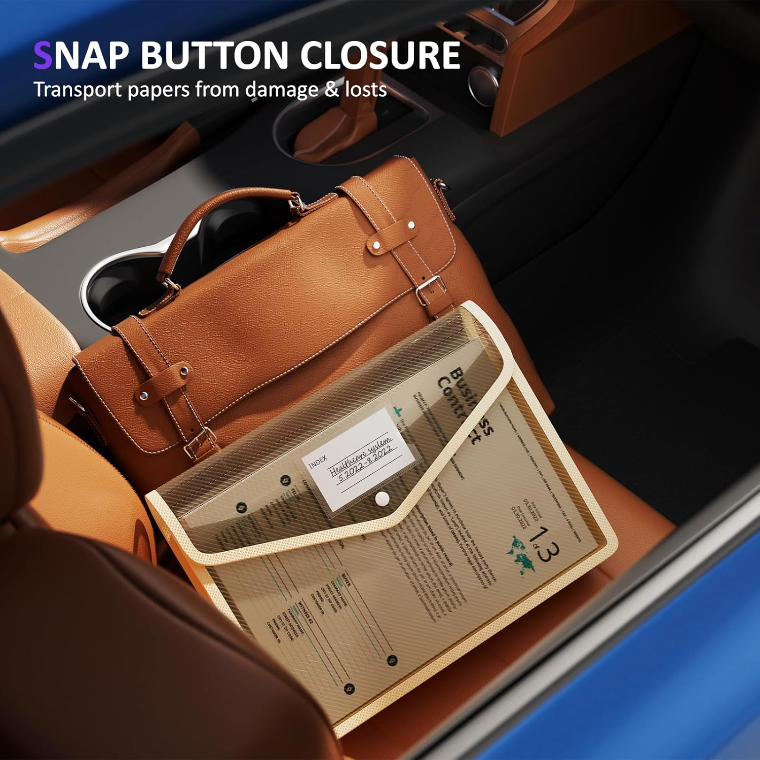 - STURDY & SNAP CLOSURE:The file organizer is made of sturdy plastic with reinforced fabric on both sides. Coupled with its snap-closure design, it is thicker, sturdier and more durable than traditional paper folders. The portable file organizer can ensure that your documents are kept safe.