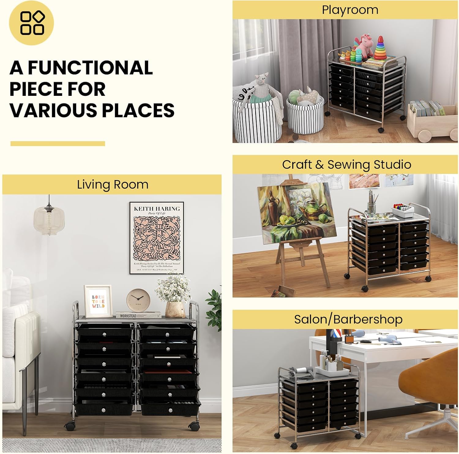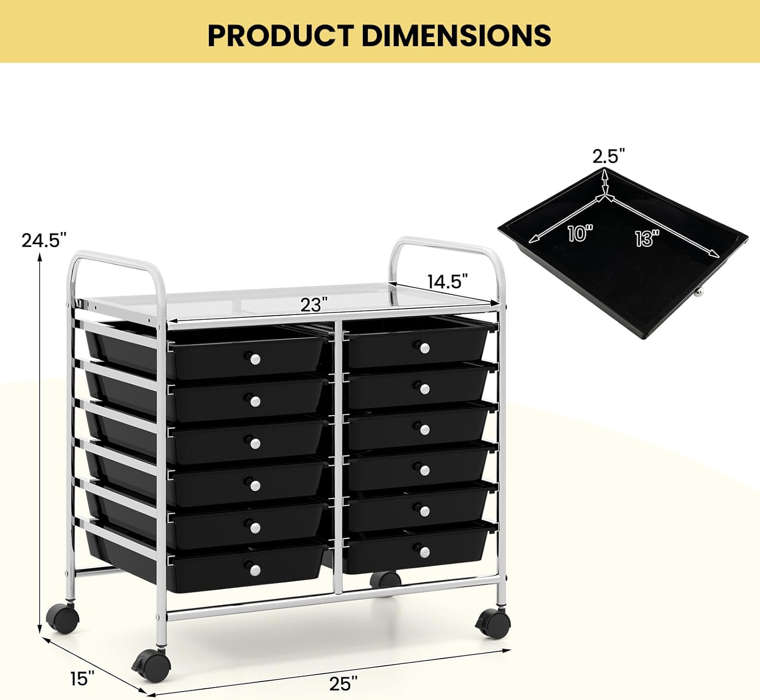 Giantex 12 Drawers Rolling Cart, Mobile Storage Drawer Cart, Classroom Organizer Cart for Office School Supplies Tools Scrapbook Paper Craft Small Printer, Utility Cart on Wheels, Black
