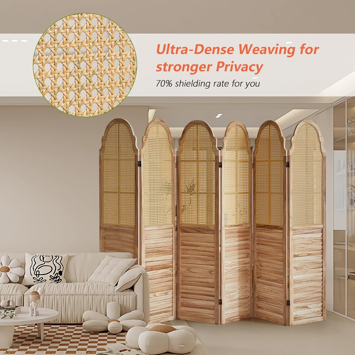 - Handmade Rattan Weaving: The room divider is made of high quality natural rattan, which is hand-woven to present a unique texture and natural beauty. The rattan is staggered and converged into an octagonal shape, which is more breathable than other materials and provides more than 60% shielding.
