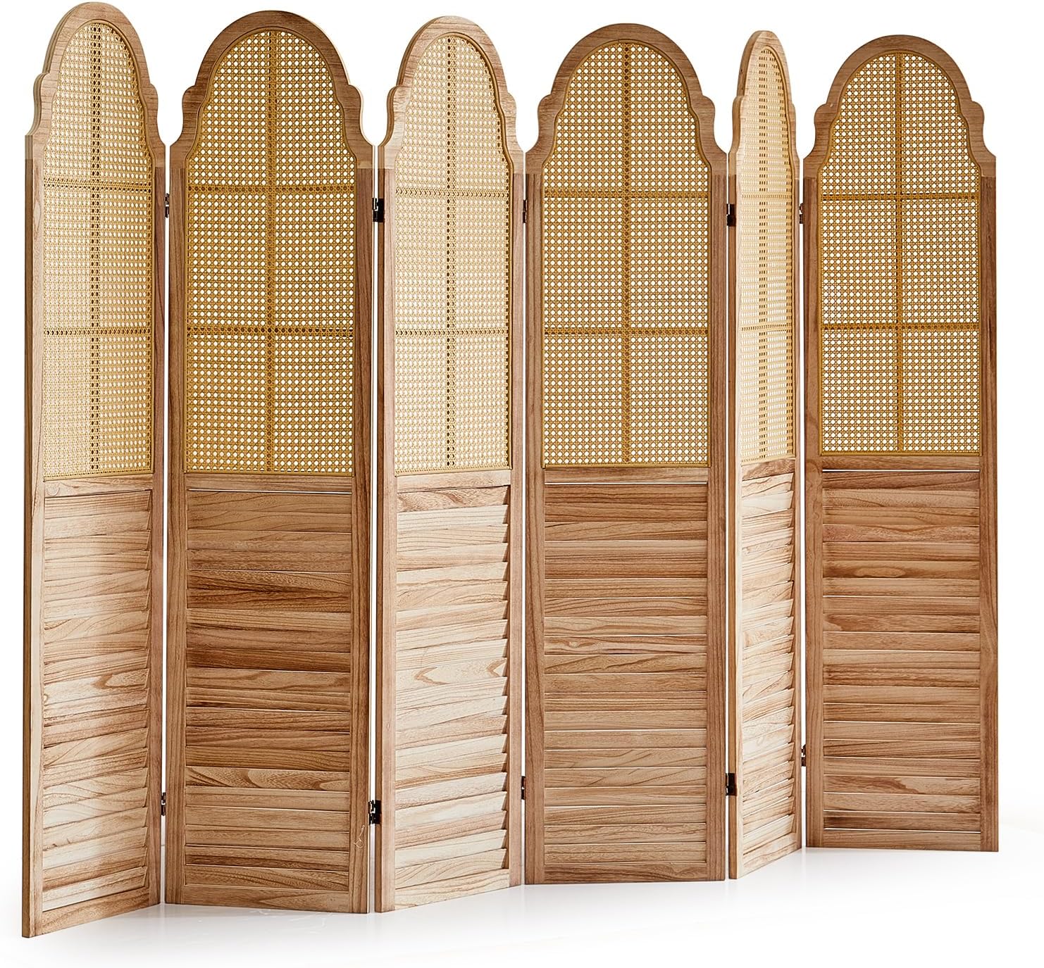 6 Panel Rattan Folding Screen Room Divider, Privacy Dividers for Rooms, Louvered Partition Dividers, Room Divider Panel for Bedroom, Dressing Room, Balcony, Light Brown