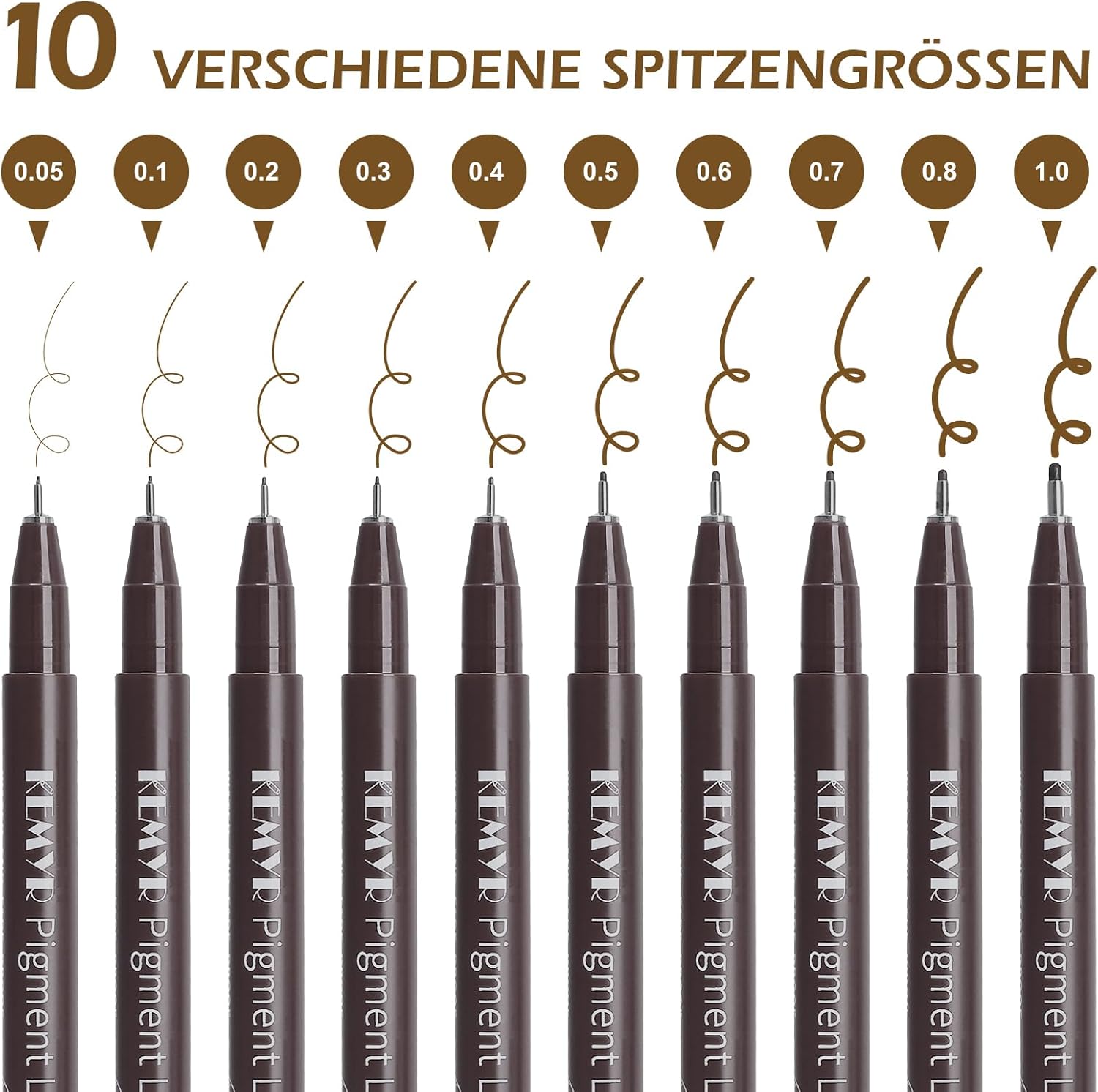 - 10 ASSORTED FINE LINE DRAWING PENS: Different pen tips unlock infinite possibilities and provide a perfect painting and calligraphic experience.FINE LINE Pens 0.05mm/0.1mm/0.2mm/0.3mm/0.4mm/0.5mm/0.6mm/0.7mm/0.8mm/0.9mm/1.0mm