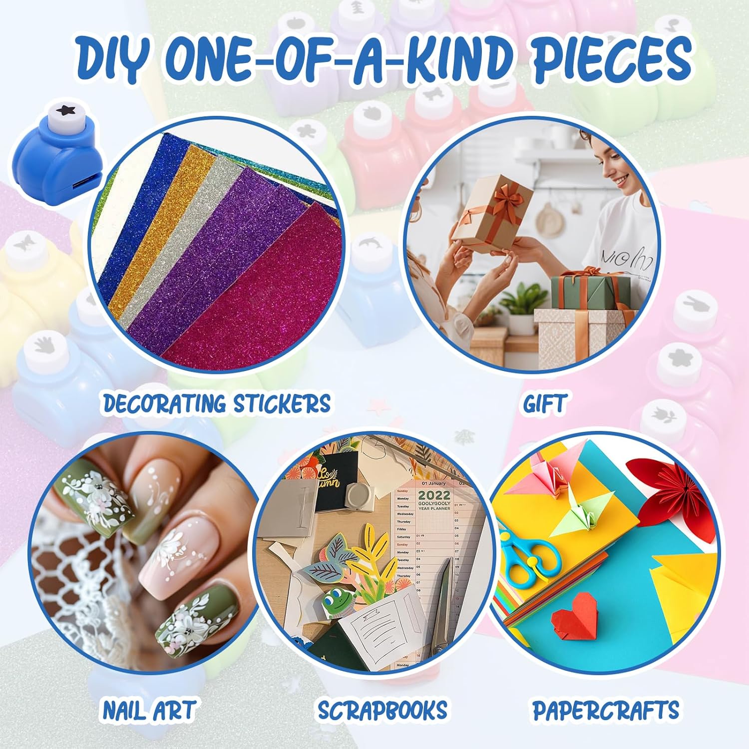 Craft Punches 36 Pack, Hole Punch Shapes 36 Patterns, Craft Hole Punch Shapes, Shape Paper Punch Set for DIY Crafting Scrapbooking Nail Art Craft Punchers Supplies