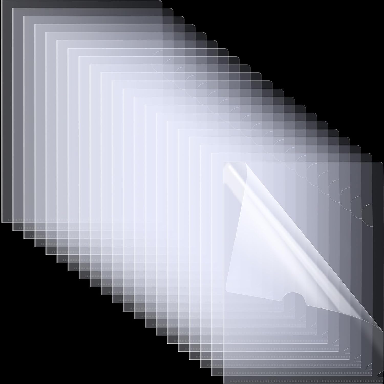 100 Pcs L-Type Plastic Folders for Documents, Clear File Folders Letter Size A4 Paper, Ideal for Home, Office Supplies, College Essentials