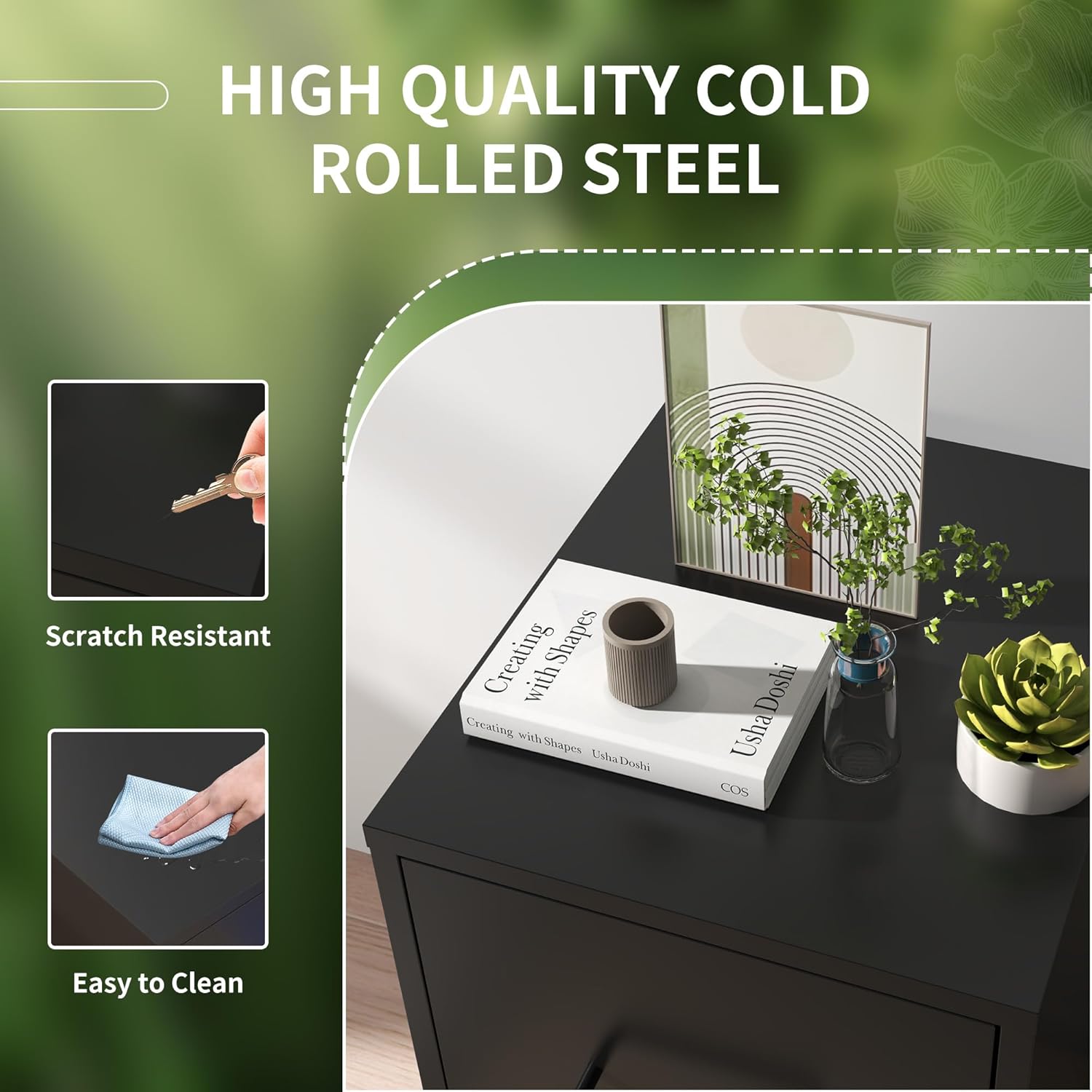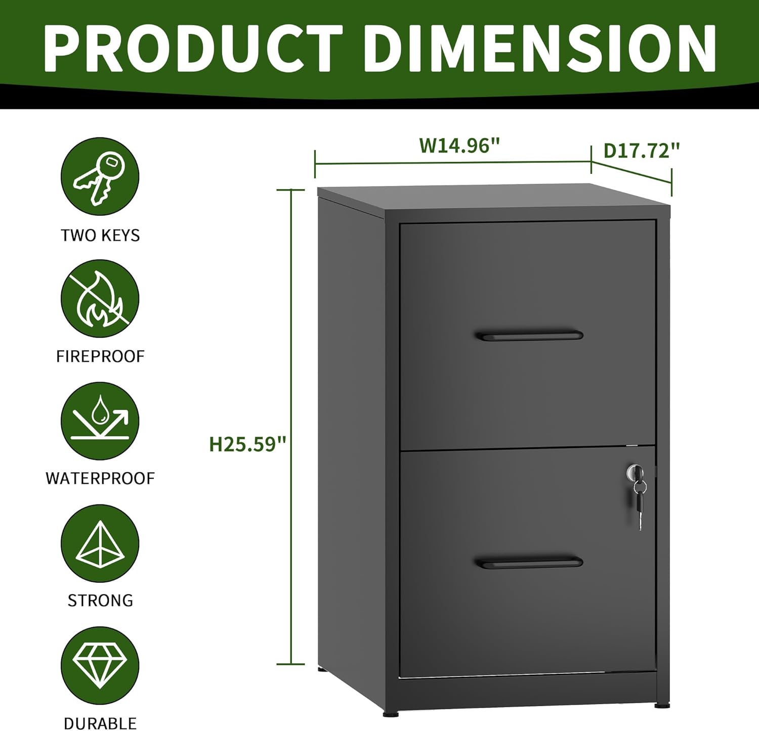 2 Drawer File Cabinet with Lock, Steel Vertical Filing Cabinets for Home Office, Small Metal Storage Cabinet for Hanging Letter Size Files Folders, Assembly Required(Black)