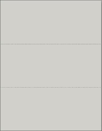 Limited Papers (TM) 8.5x11 Perforated Paper, 20/50 Pound, 75 GSM, Variety of Perforation Sizes and Colors, for Forms, Tickets, Postcards. (Grey, 3 up - horizontal 3 2/3" and 7 1/3" from bottom)