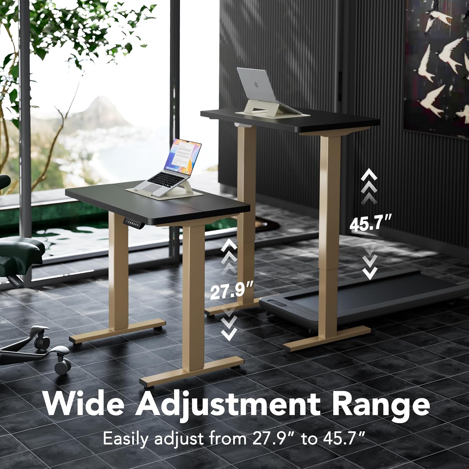 HUANUO 32" Small Electric Standing Desk Adjustable Height, 4 Memory Height Settings, Sit Stand Up Desk for Home Office & Computer Workstation, Black and Gold Frame