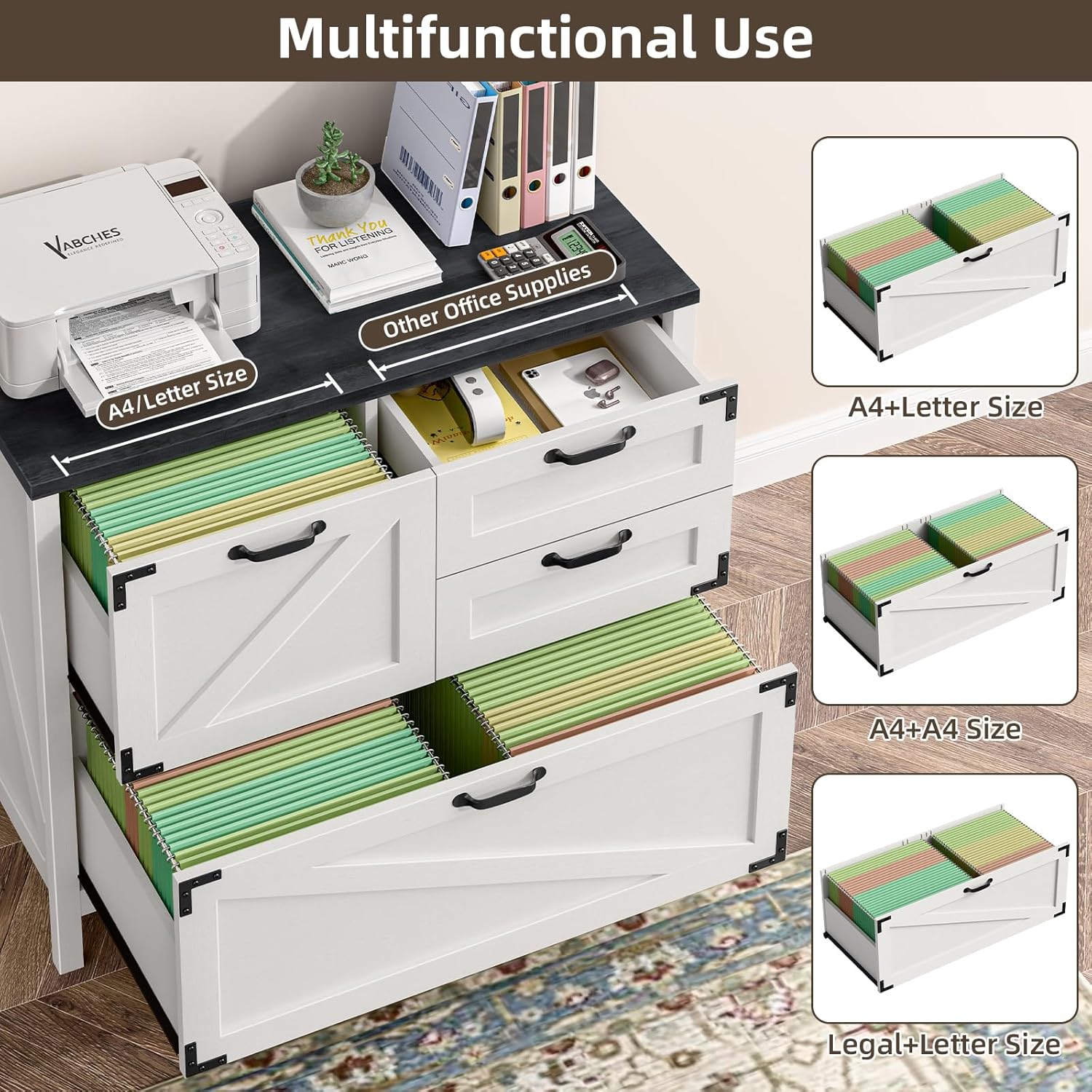 - 🖨️【Multi-functional Storage】This lateral file cabinet can be used not only for hanging files to keep your documents organized. It can also be used as a dresser or large nightstand for household items.The large 33.27"W x 15.75"D desktop is perfect for printers, scanners and more.