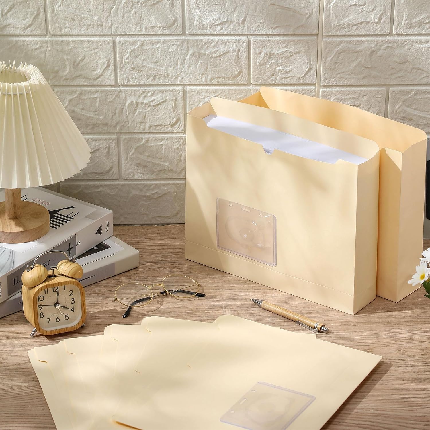 Zhehao 100 Pcs File Jackets Reinforced Straight Cut Tab Pocket Folders Expandable File Folder Expanding Paper Organizer with Tabs Expansion Pocket, Letter Size (Beige Color,with Label Pocket)
