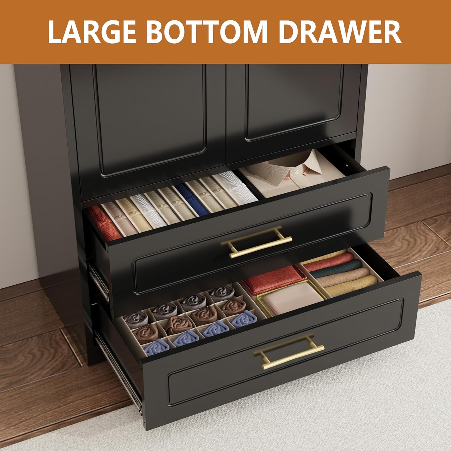 - [SAFE & PRACTICAL DESIGN] The wardrobe closet with drawers is equipped with anti-tipping devices to prevent tipping over and ensure the safety of you and your family. The adjustable leveling feet ensures that it always stands firmly