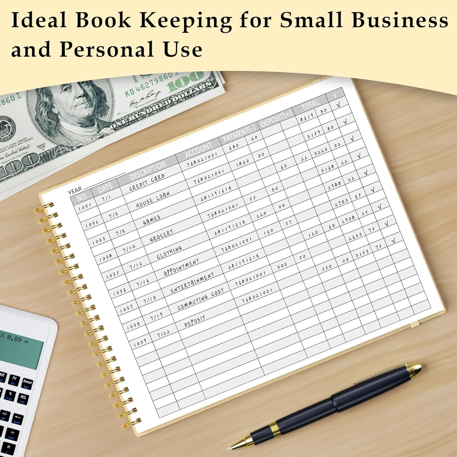- Horizontal Layout Design: The expense tracker notebook overall measures 10.2 x 8 inches, with enough space on each page to record transaction details, including YEAR, NO., DATE, DESCRIPTION, ACCOUNT, PAYMENT(-), DEPOSIT(+), TOTAL, ✔, Helps to organize and analyze your financial activities and prepare financial statements