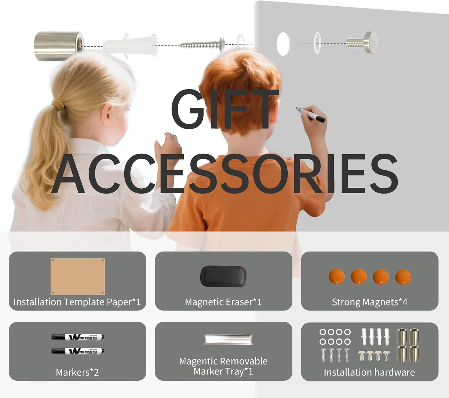 - Easy to Install: Glass Whiteboard Magnetic Dry Erase White Board is easy to install. Through the assembly instructions provided by us, you can easily install the whiteboard vertically or horizontally on the wall.