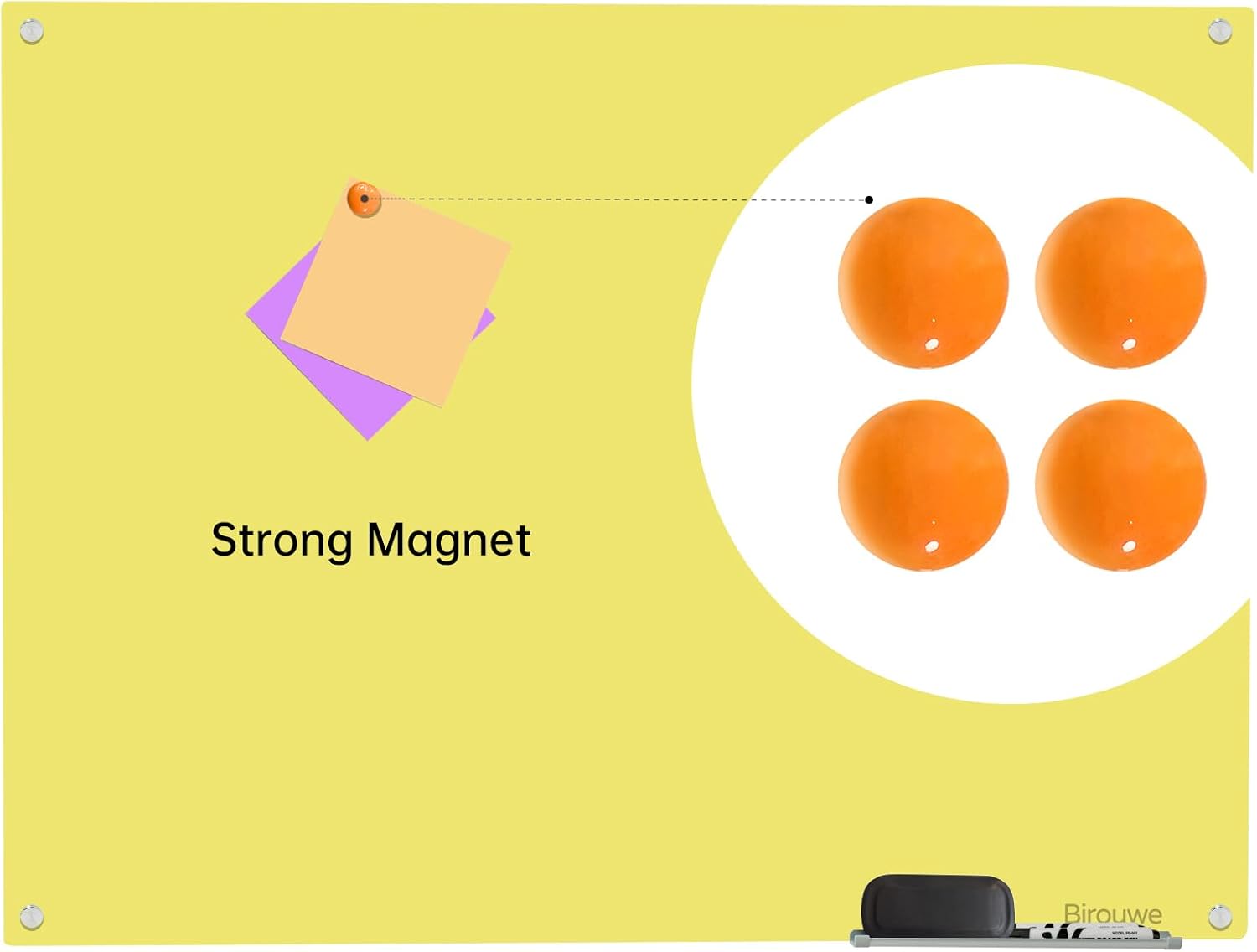 - Frameless Tempered Glass Design: Our glass whiteboard features a sleek frameless design that maximizes the writing area, allowing for unrestricted creativity. With a size of 48 * 36 inches, the smooth tempered glass surface ensures effortless writing, easy wiping, and no dust accumulation.