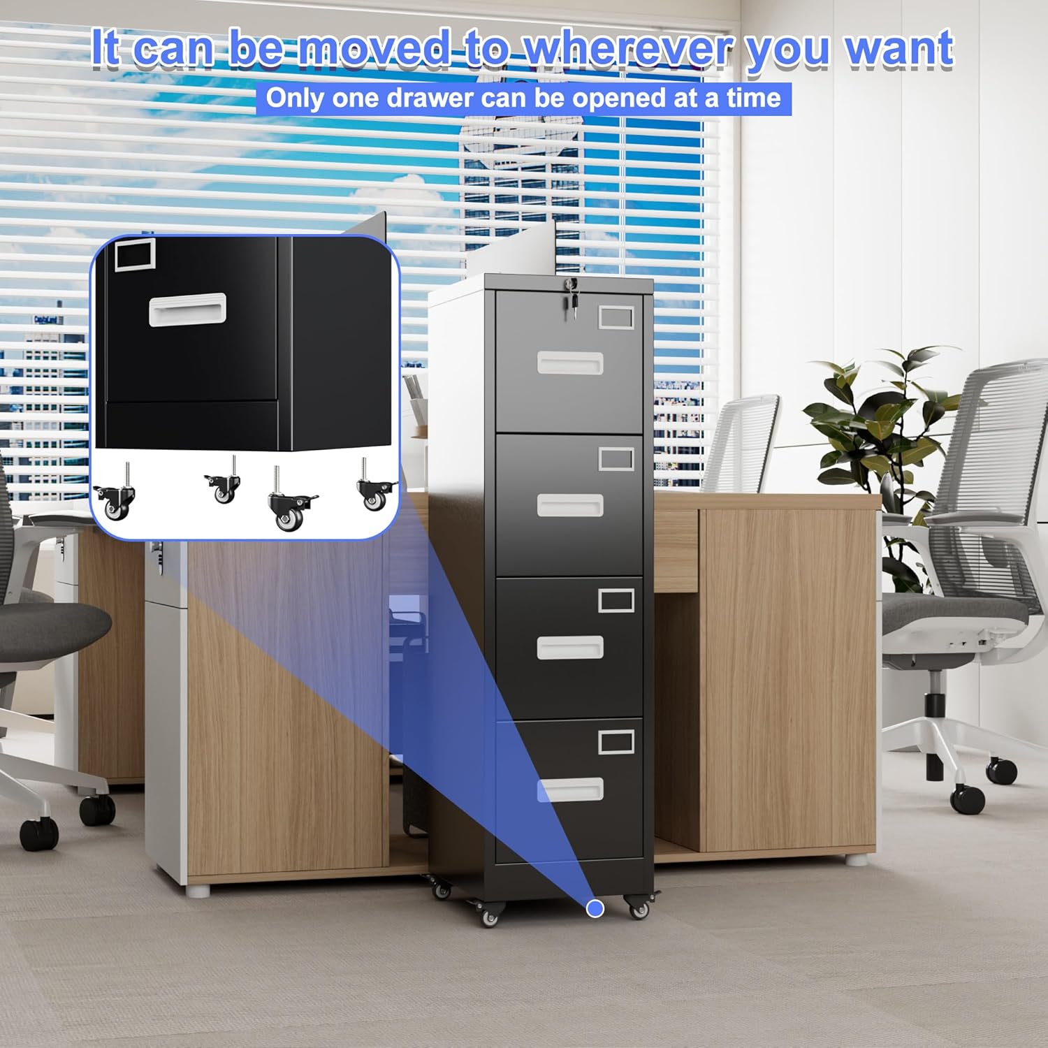 - [Heavy Duty Construction] 4 drawer file cabinet with lock black with high quality steel structure, this office file cabinet can serve as extra table for a printer or scanner